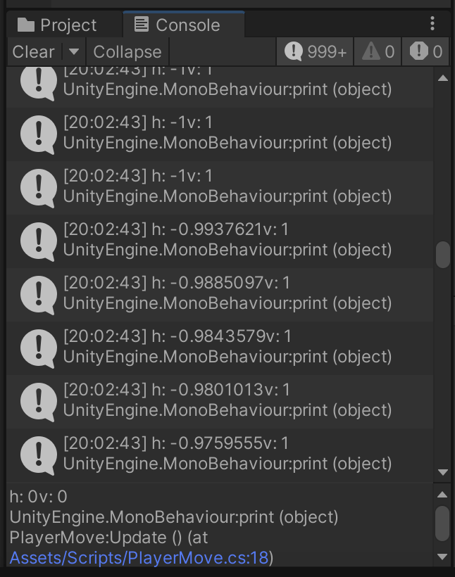 ✔︎ GetAxis는 그렇지 않아서 부드러운 움직임을 보일 때 좋다 (누르지 않으면 0으로 부드럽게 되돌아감)