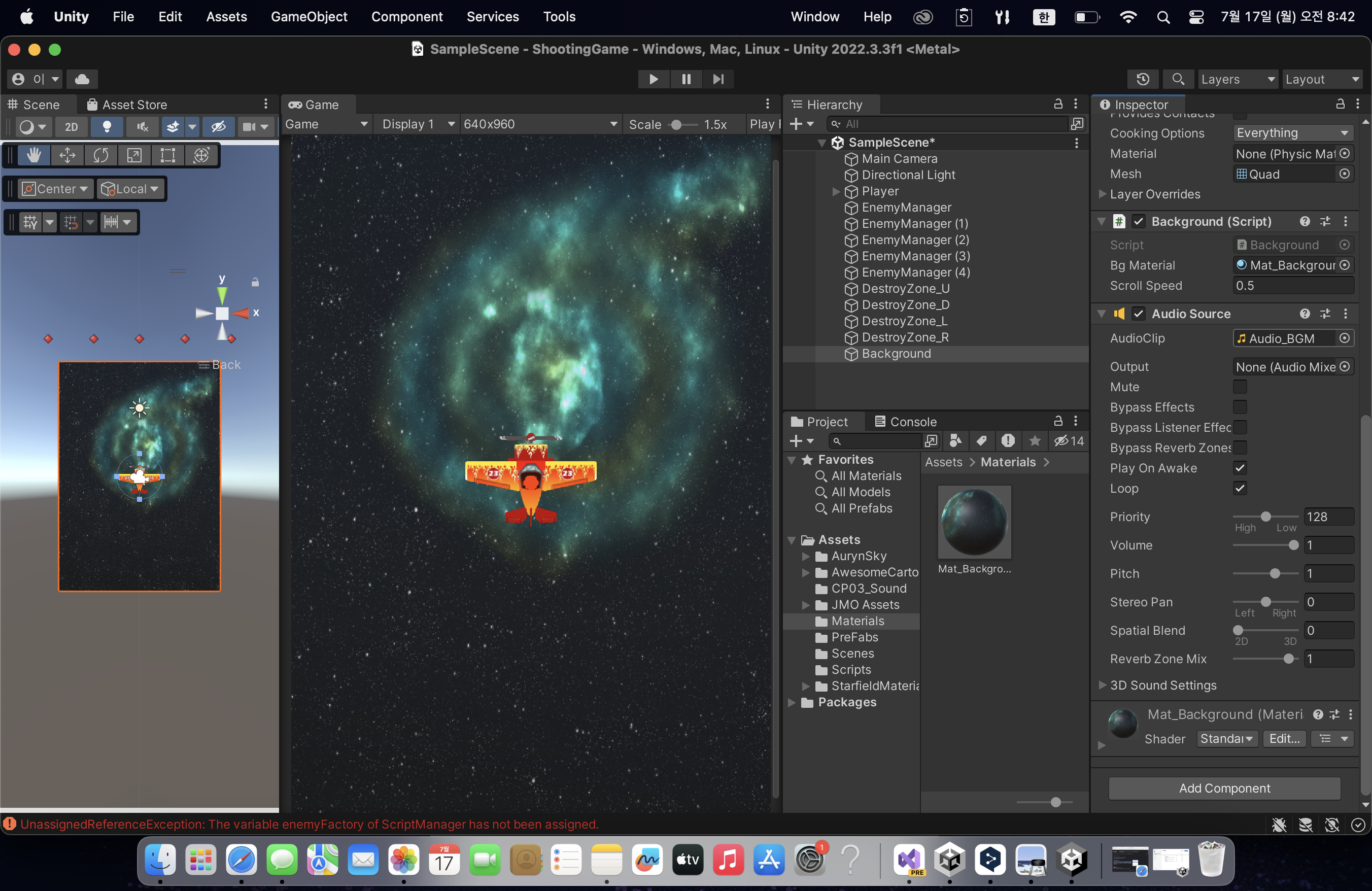 ✔︎ BGM - background에 집어넣기 (background는 게임 시작부터 끝까지 존재하는 옵젝이므로 적합)