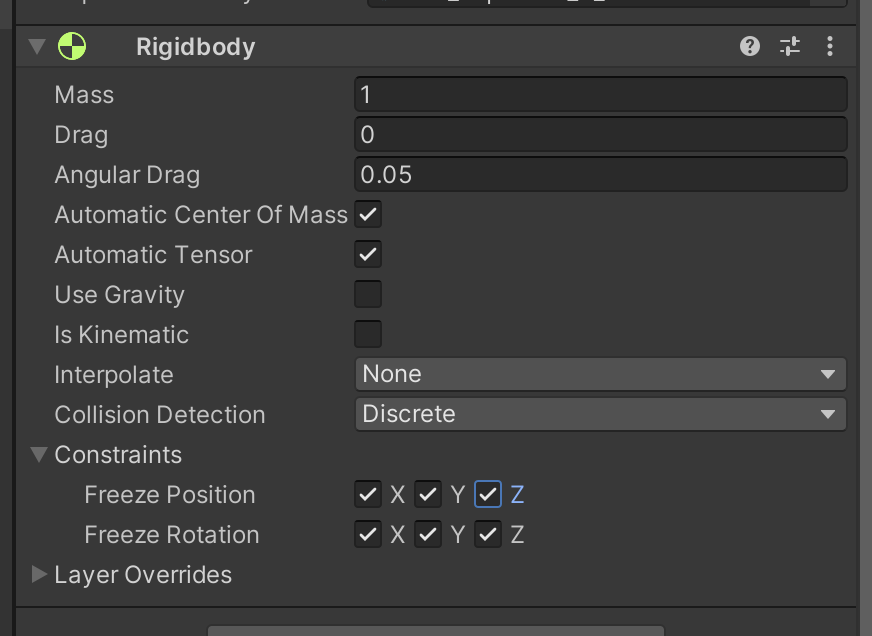 bullet 프리팹에서 리짓바디에서 Freeze ~~~ 두개 다 켜주기