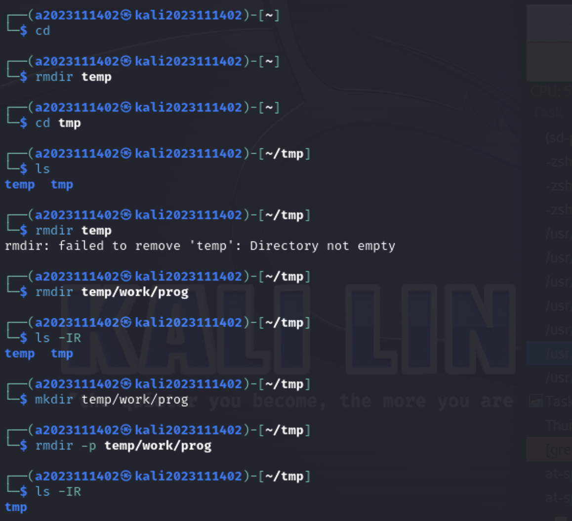 -p : 지정한 디렉토리 삭제 후 부모 디렉토리가 비어있으면 삭제