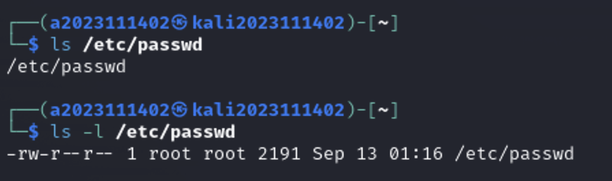 ls /etc/passwd : /etc/passwd 에 대한 정보 출력