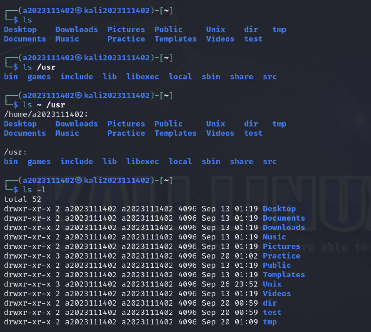 ls ~ /usr : ~와 /usr 디렉토리 목록 출력 (~은 홈 디렉토리)