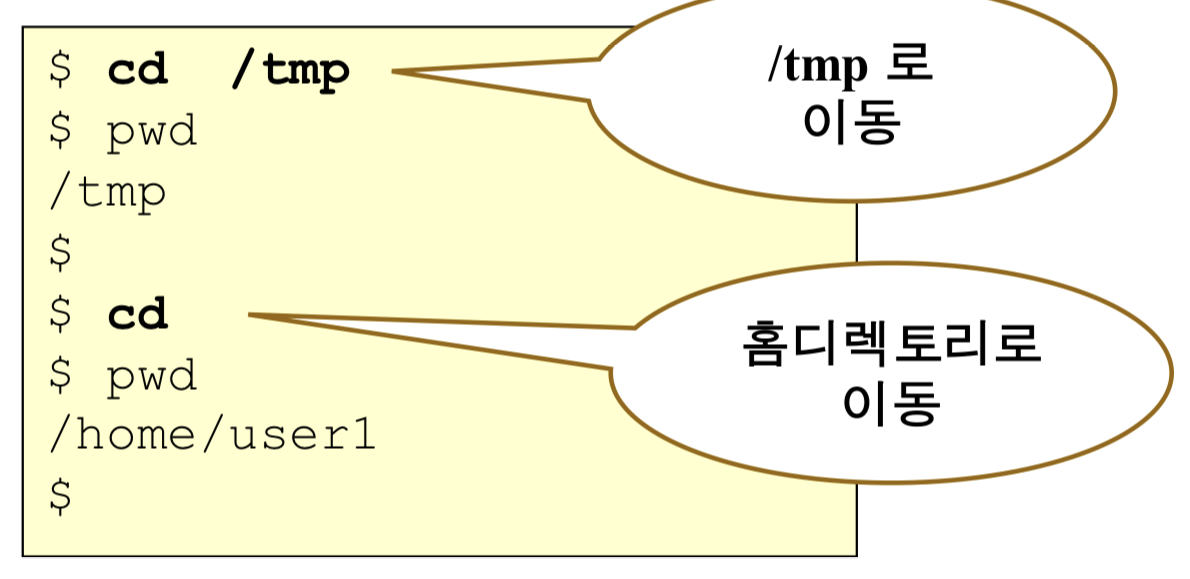 cd : 현재 사용자의 홈 디렉토리로 이동