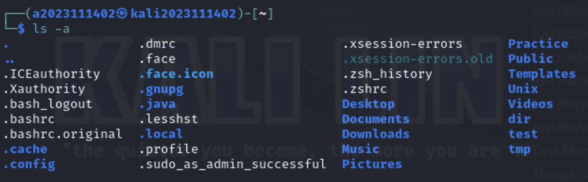 ls -a : 현재 작업 디렉토리의 파일 목록을 출력(숨겨진 파일도)