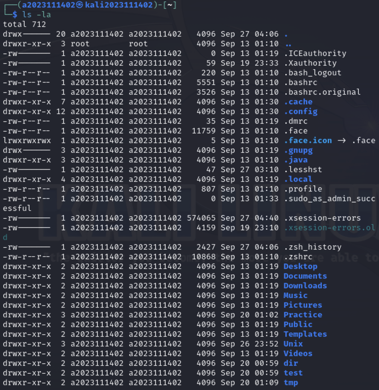 (-a에서 . .. 인게 숨김 파일인데 이마저도 더 자세히 보게 해주는 것이 -la)