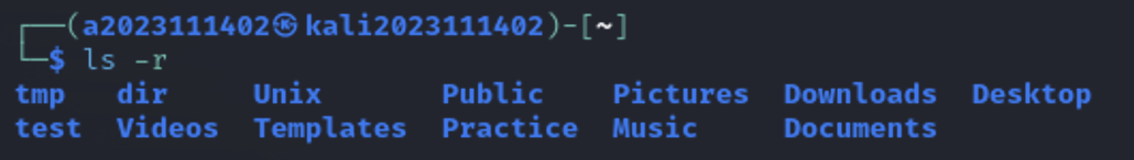 ls -r : 현재 작업 디렉토리의 파일 목록을 알파벳 역순으로 출력