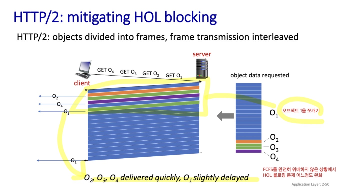 - HTTP2는 잘라서 해결(framing) - 오브젝트를 작게 잘라서 처리및 전송을 번갈아가면서 함