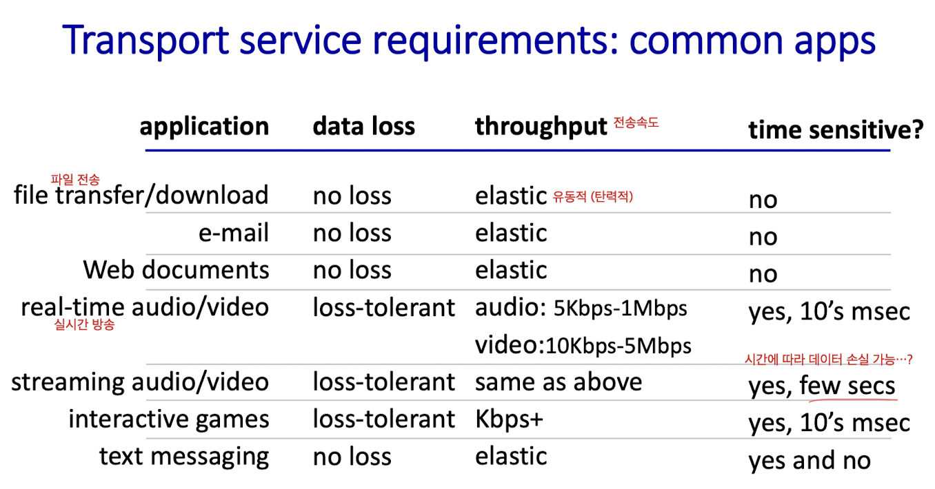 [ App 에게 필요한 전송 서비스 조건들 ]