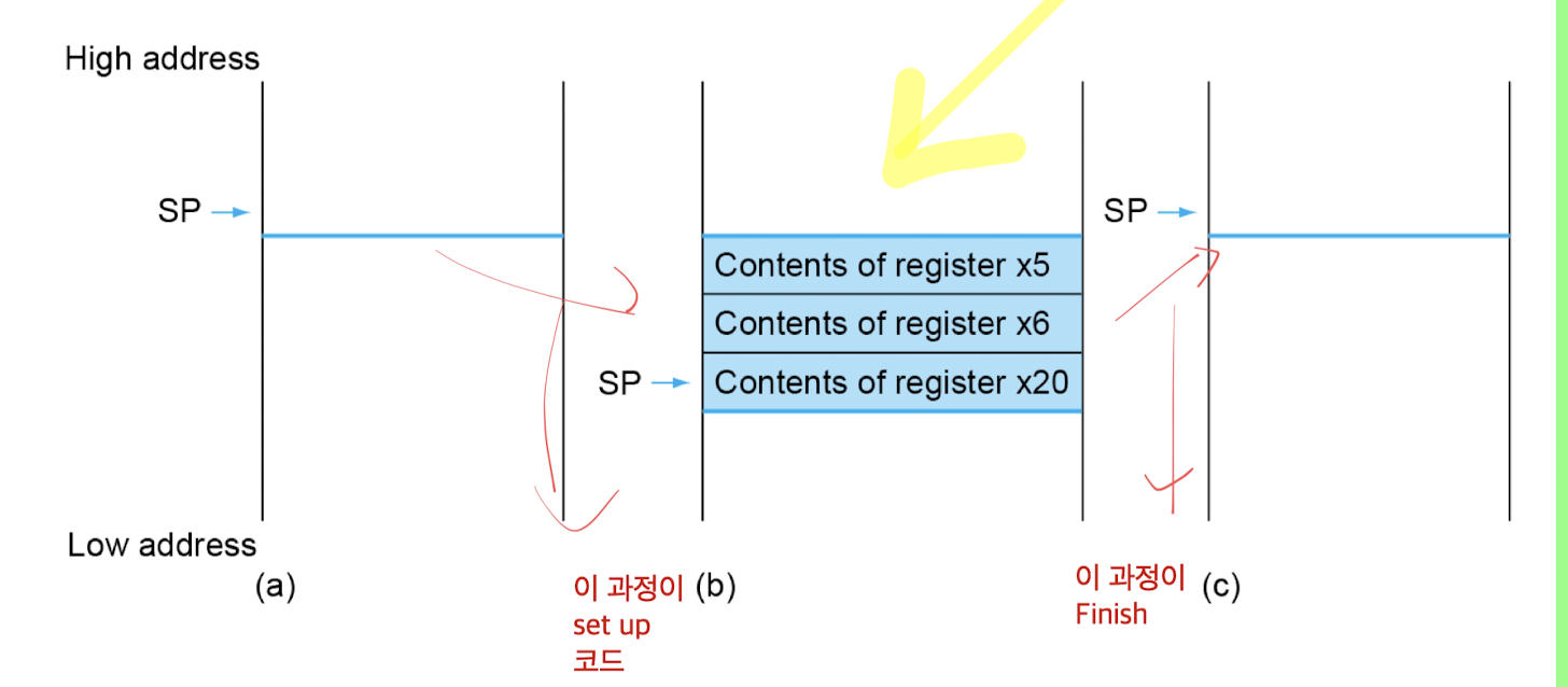 - 기본적으로 Leaf Procedures과 동일 ( Leaf는 다른 함수를 호출하지 않는 함수 - 즉 return 주소를 스텍에 저장할 필요 x) )
