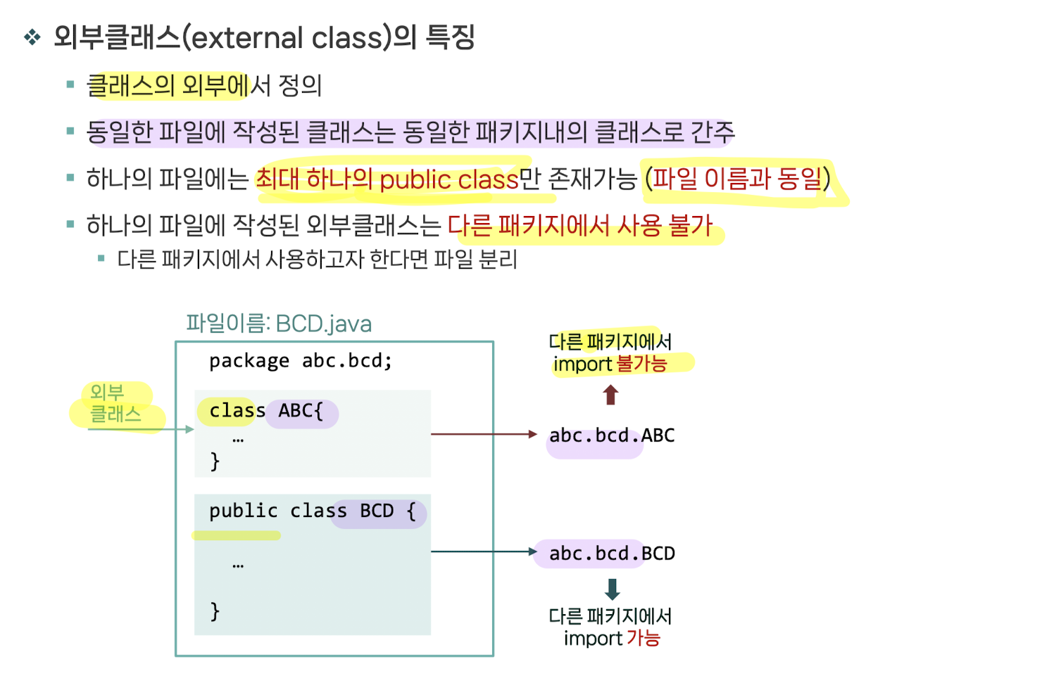 JAVA - 클래스 외부 구성요소 (package & 외부 클래스) (기말) 본문