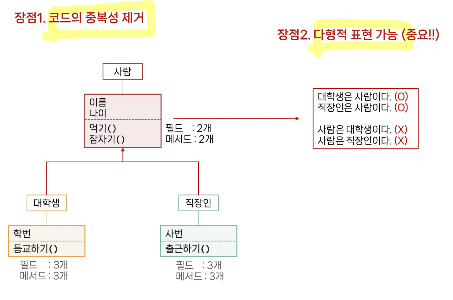 - 클래스 상속에서 부모 클래스는 둘이 될수는 없지만(모호한 상황이 일어날 수 있기에 다중상속 불가)