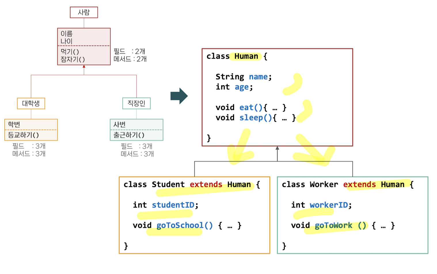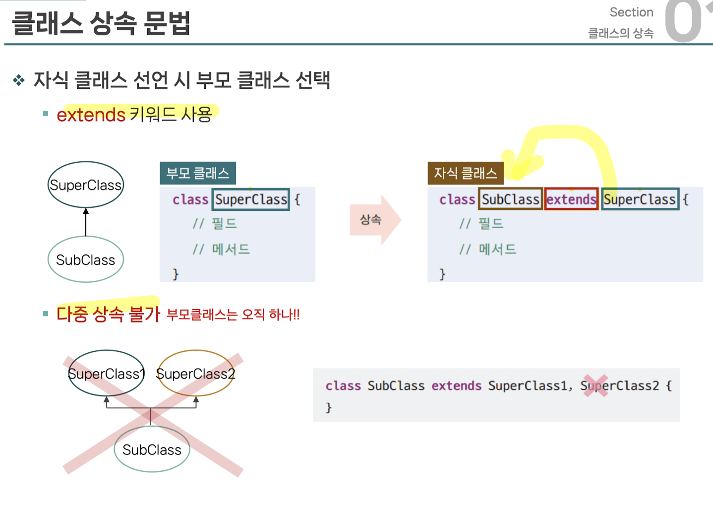 클래스 상속 문법 : extends