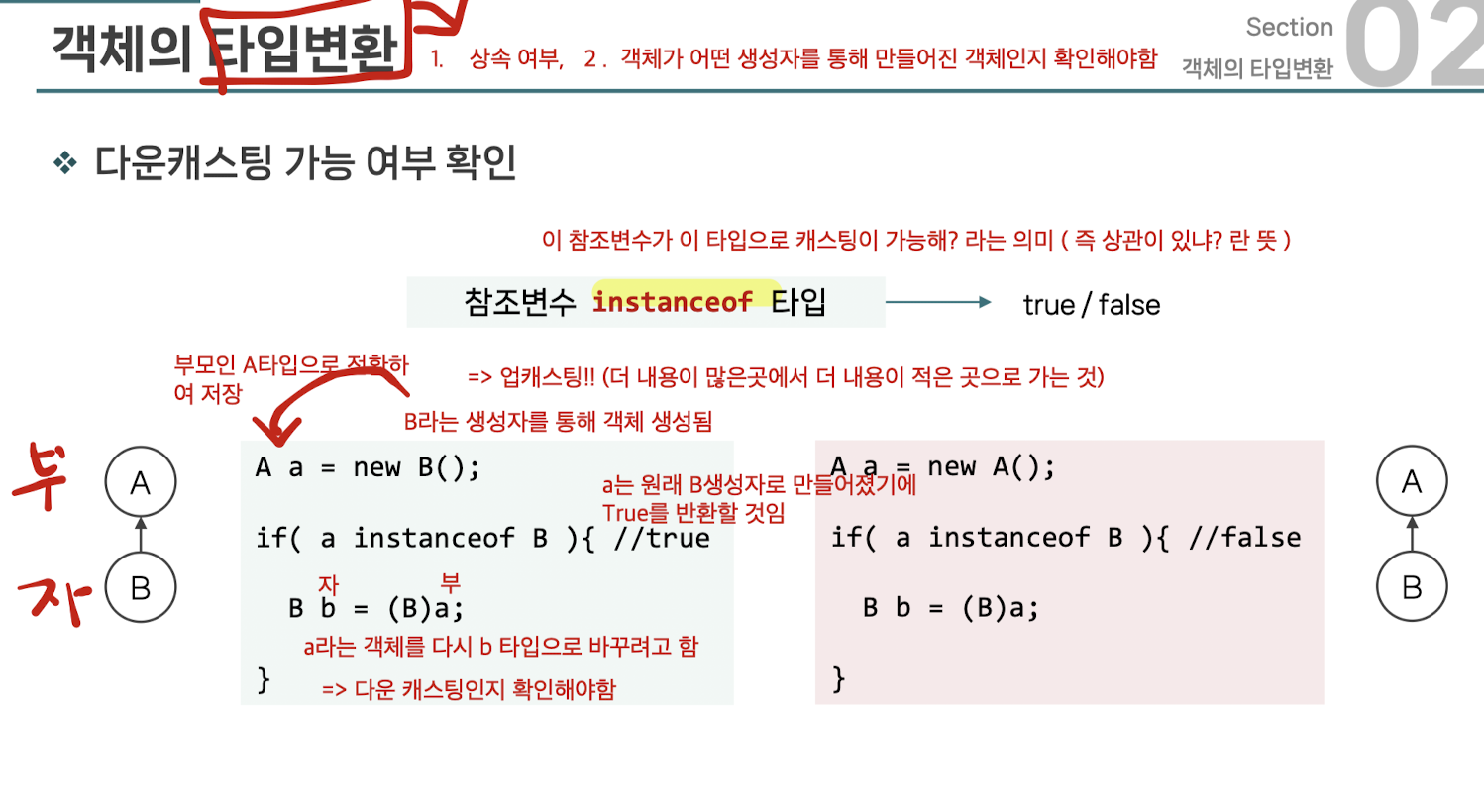 JAVA - 객체의 타입 변환 (업캐스팅 / 다운캐스팅) / instanceof 본문