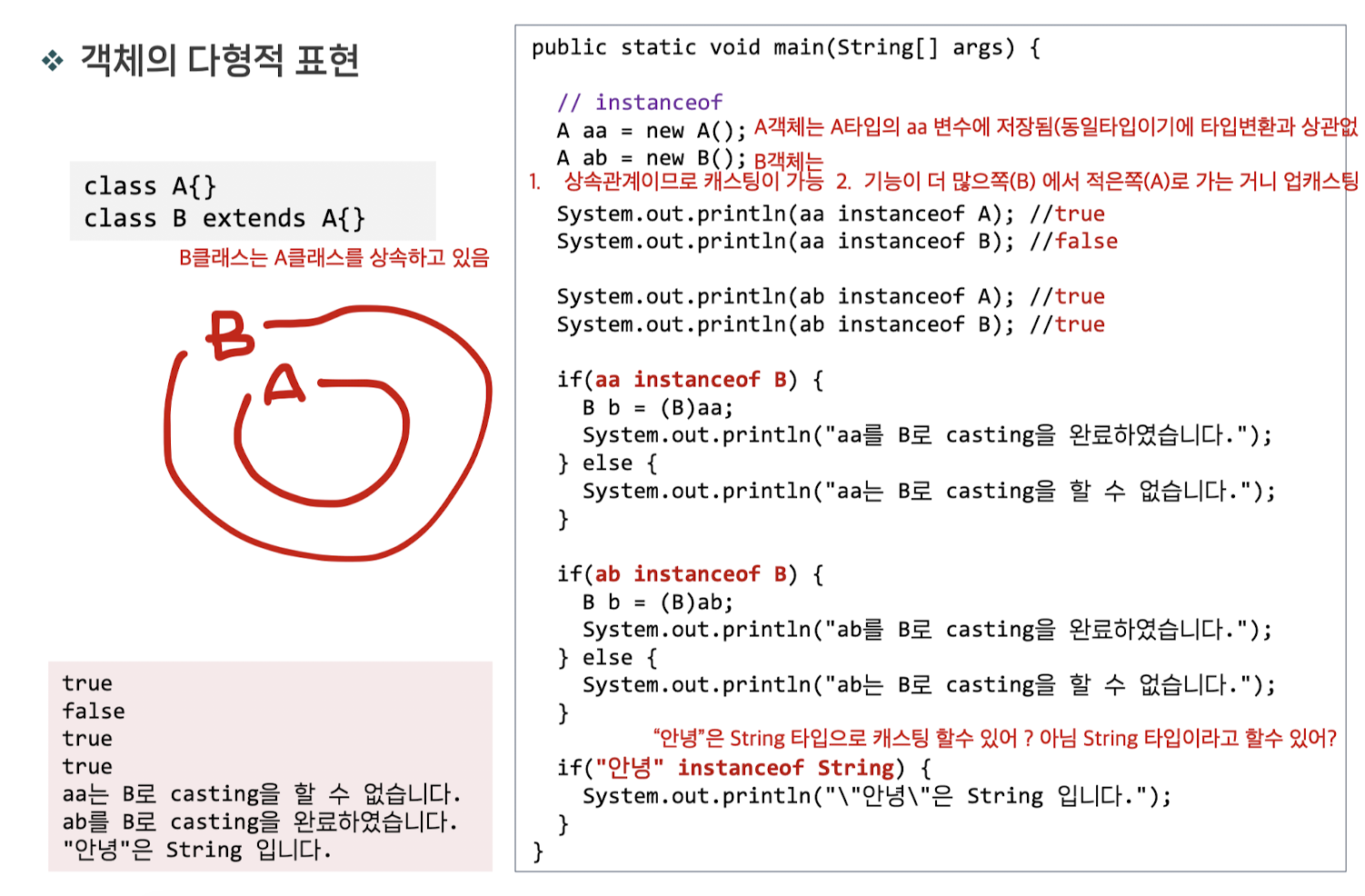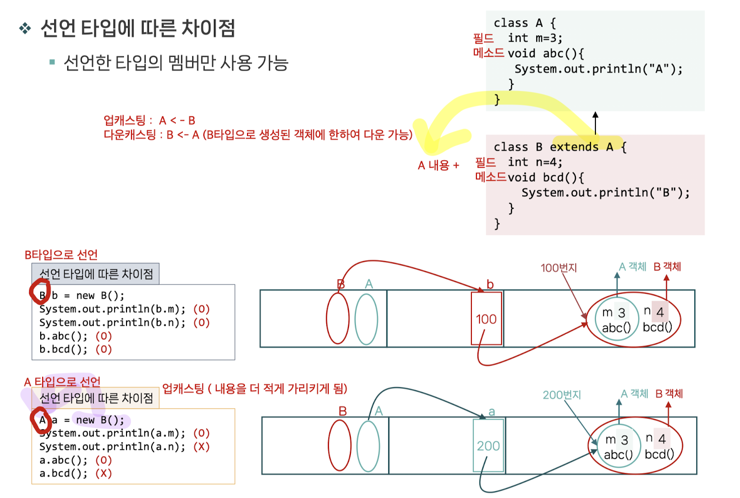 업캐스팅과 다운 캐스팅 조건