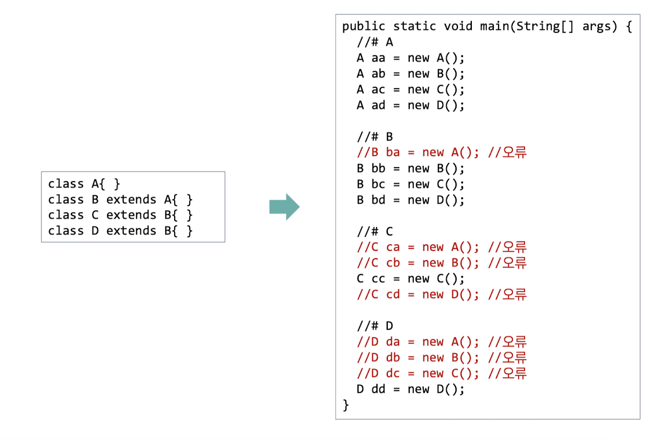 : 왼쪽 참조변수(객체)가 오른쪽 타입으로 캐스팅이 가능해?