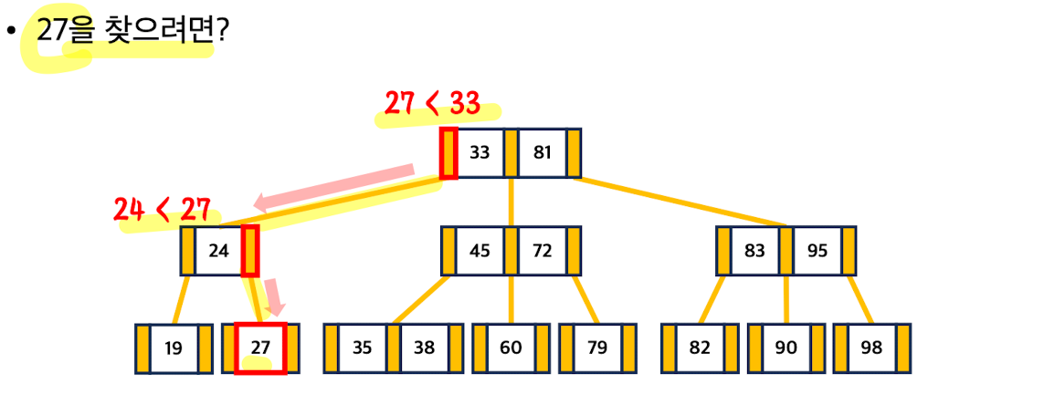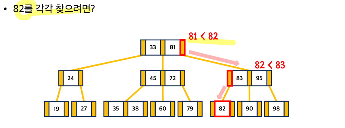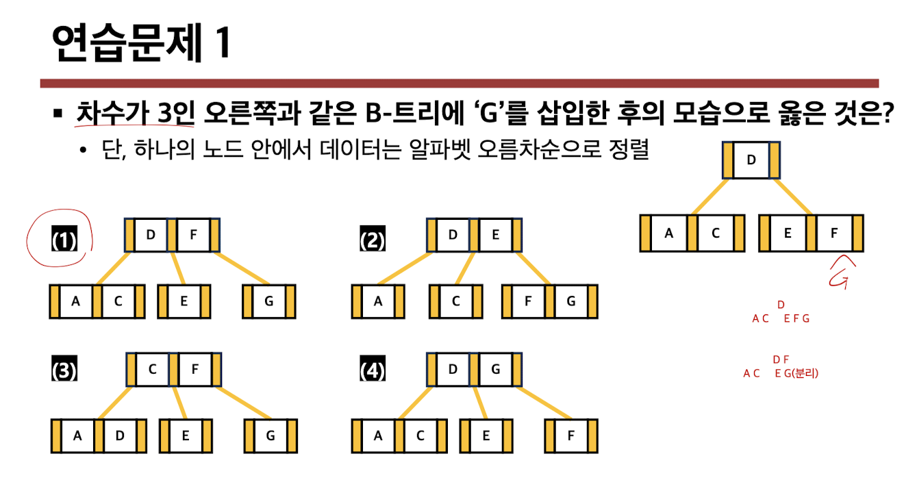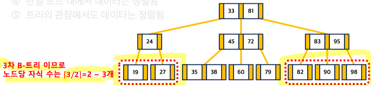 >> 즉, m차 B트리 에서 노드 내 데이터의 수는 최대 m-1개