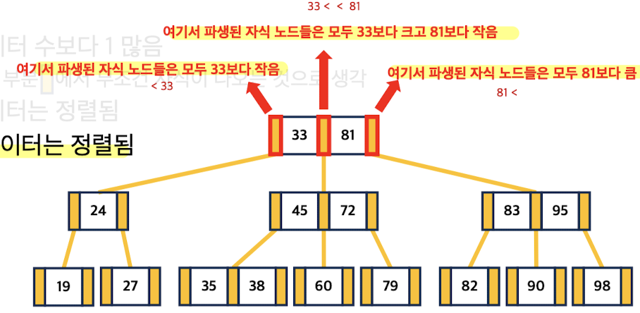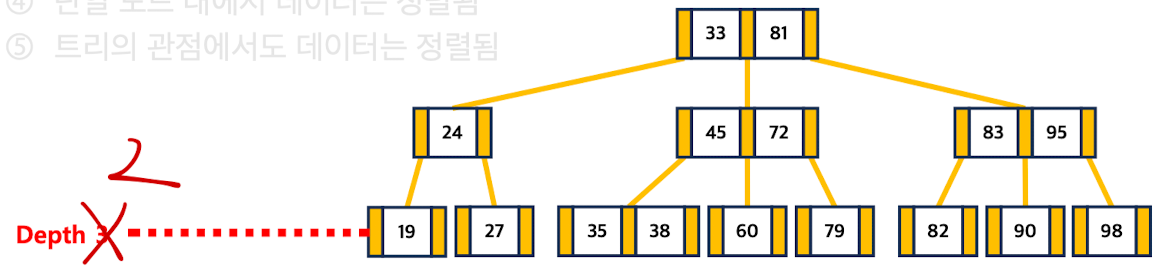 3. 자식 노드의 수는 데이터 수보다 1 많음 (leaf노드 제외)