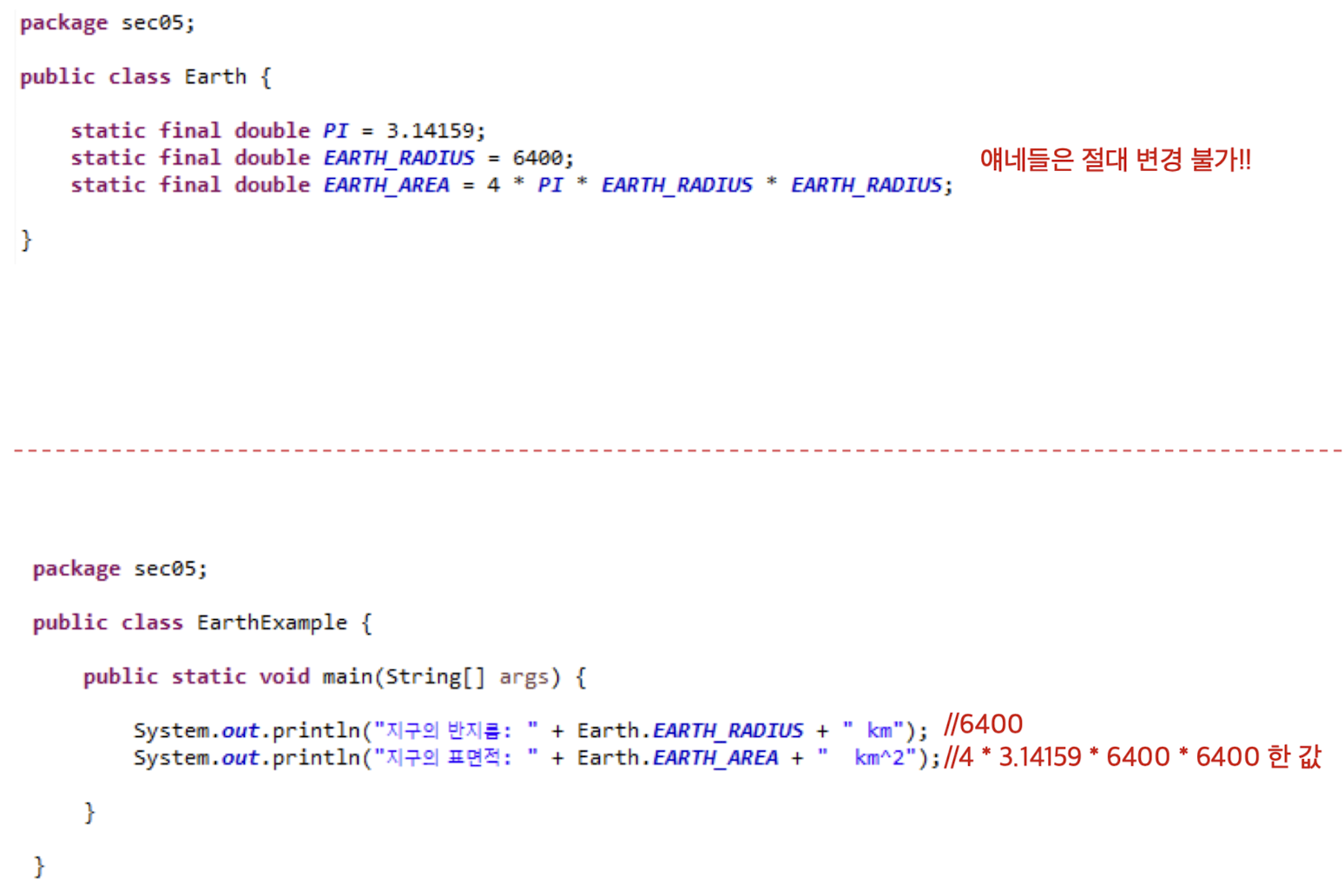 상수는 값이 변경되지 않으므로(final)