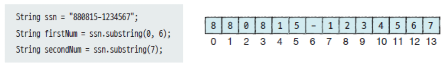 - substring(int beginIndex) : 주어진 인덱스부터 끝까지 문자열 추출