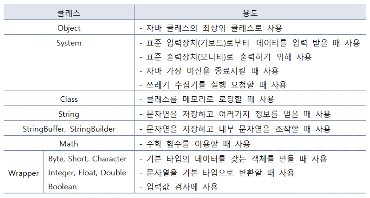 - 자바의 가장 기본적인 클래스와 인터페이스가 담겨있는 패키지
