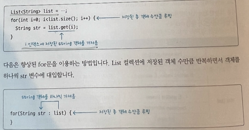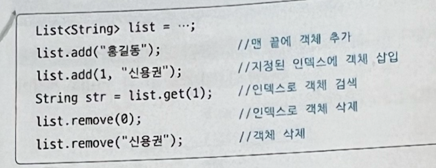 E 타입 파라미터 : 저장되는 객체의 타입을 List 컬렉션을 생성할 때 결정하거라 라는 뜻