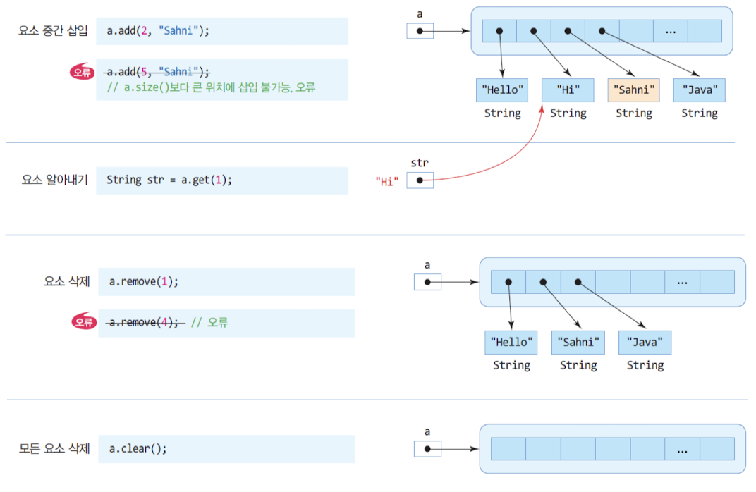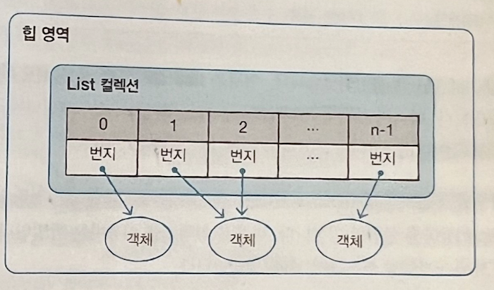 - null도 저장 가능 - 이 경우 인덱스는 객체를 참조하지 않음