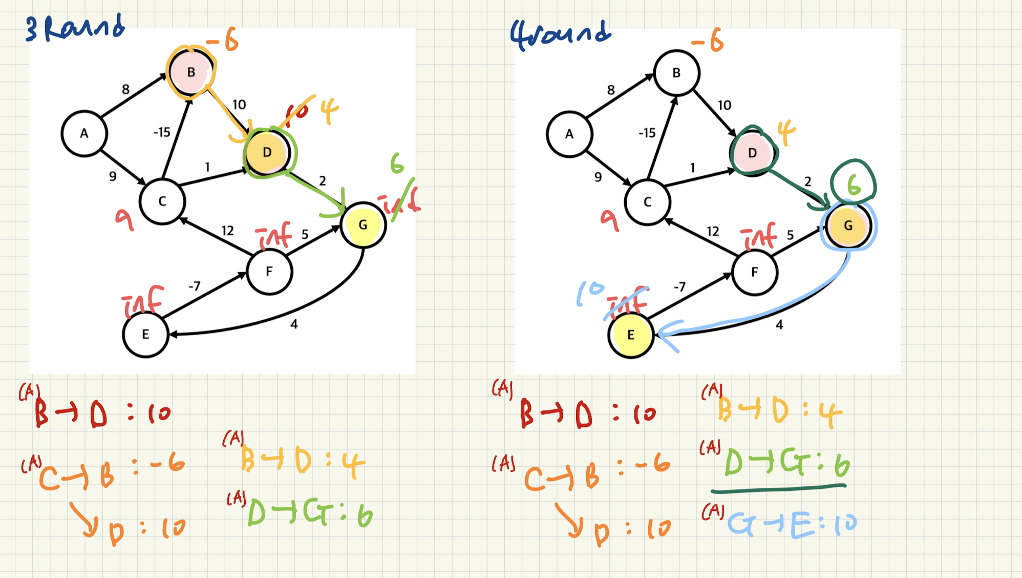 노드가 N개 있을 때 N-1 round를 수행 !!! ( n개의 노드를 방문해야 한다면 최대 간선의 개수는 n-1이니)
