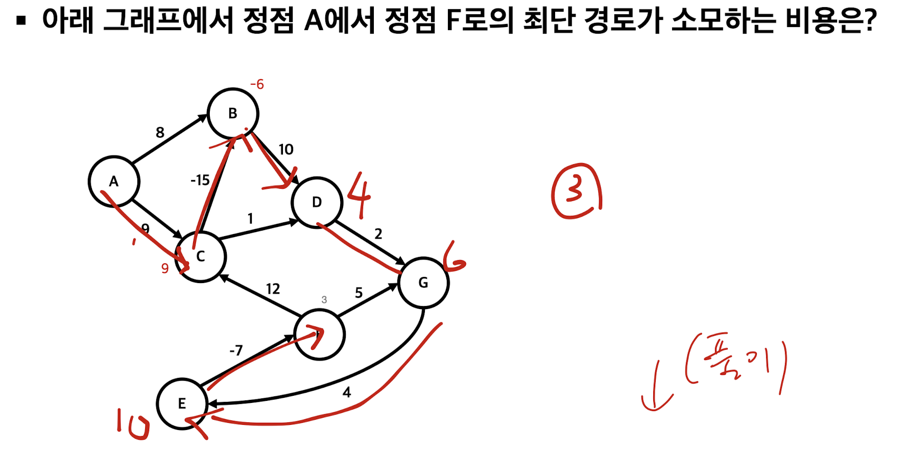 '음의 가중치를 가지는' 그래프에서도 최단 거리 찾기 가능 & 고정 시작점