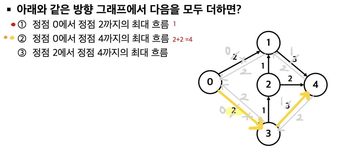 - 반대 방향의 흐름까지 기록하는 과정을 반복하여, 가능한 모든 흐름을 찾아 더함
