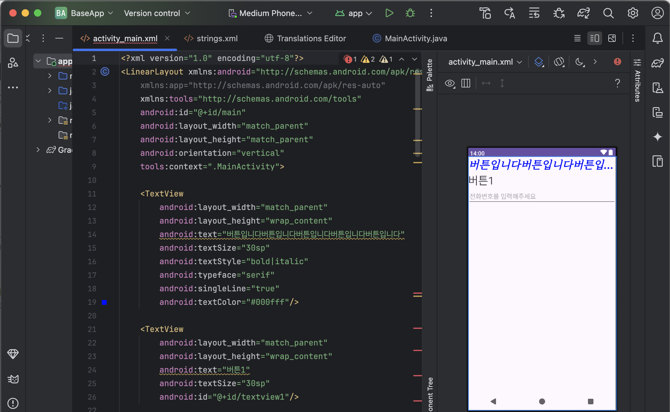 📱 모바일프로그래밍 - 기본 위젯 다루기(텍스트뷰, 버튼, 에디트 텍스트)📱 본문