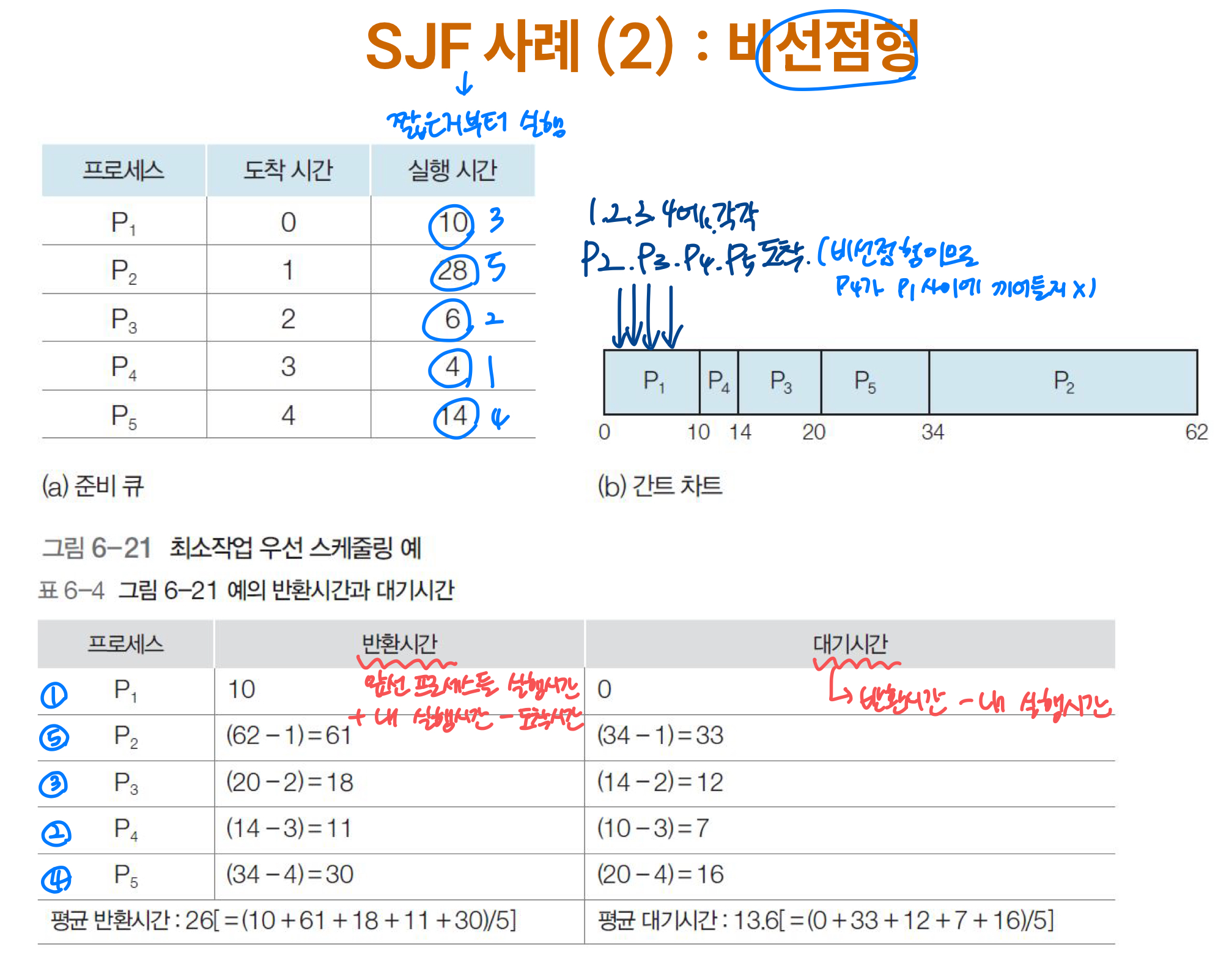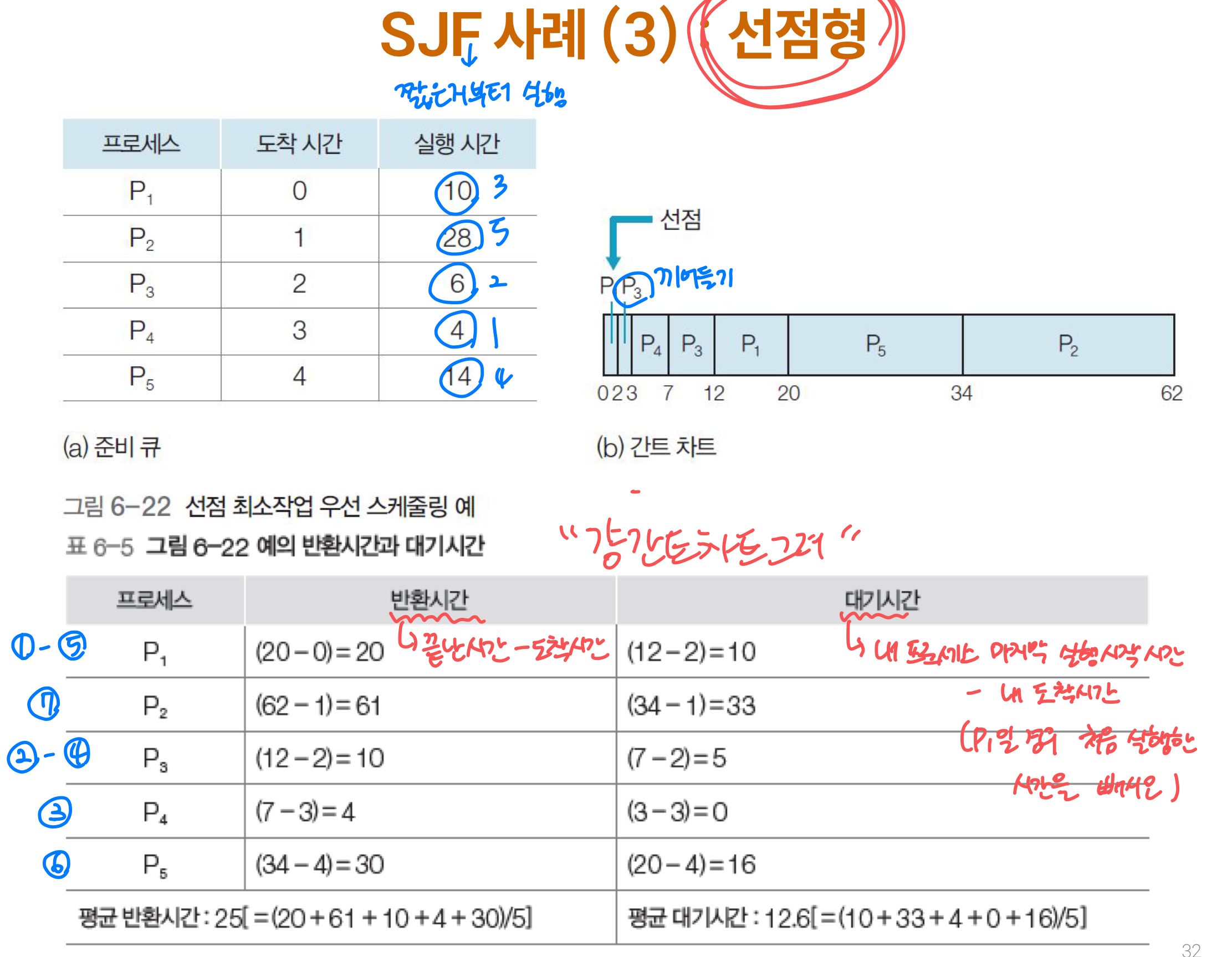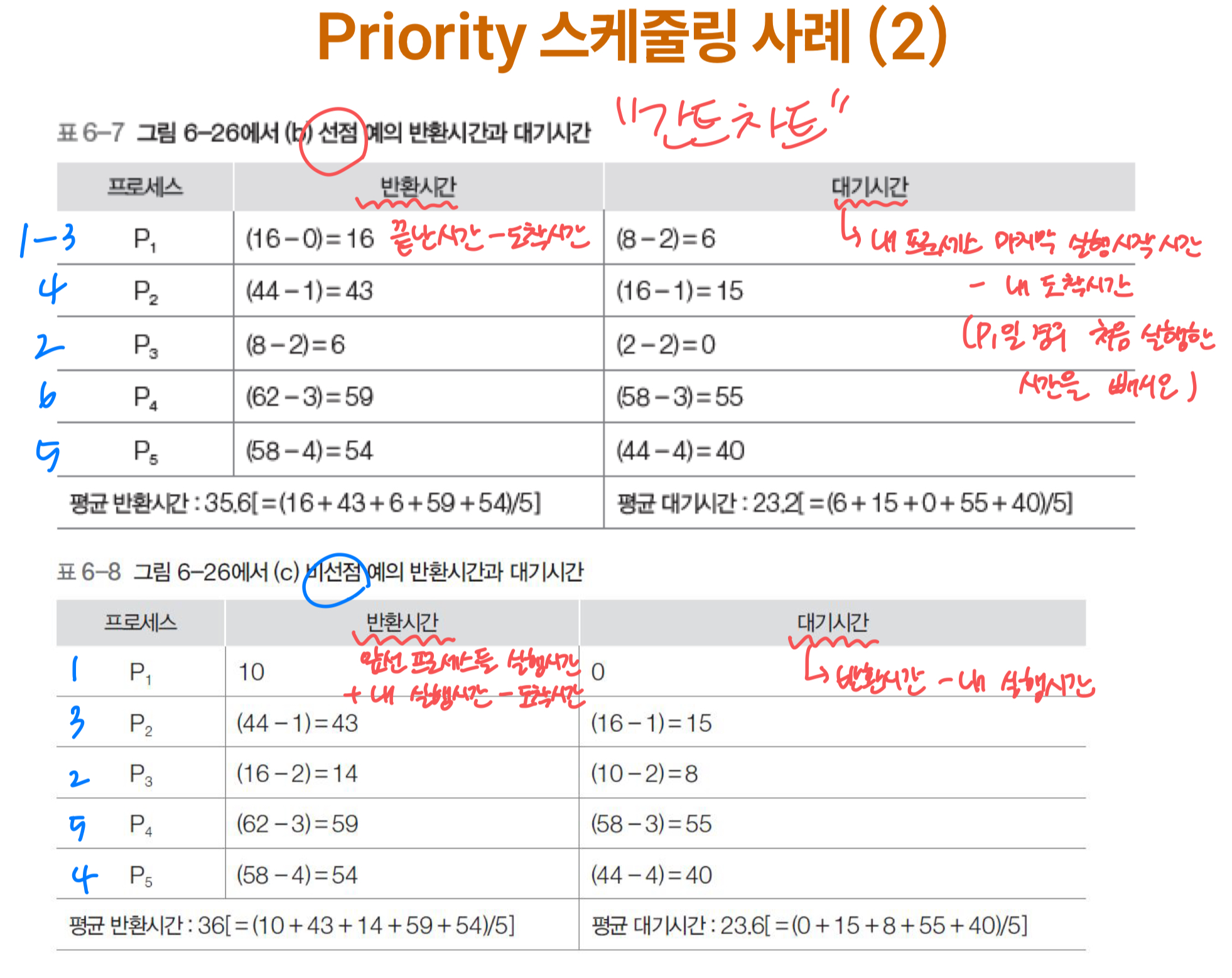 ** 선점형은 간트 차트 그려서 반환시간과 대기시간 적길 바람 **