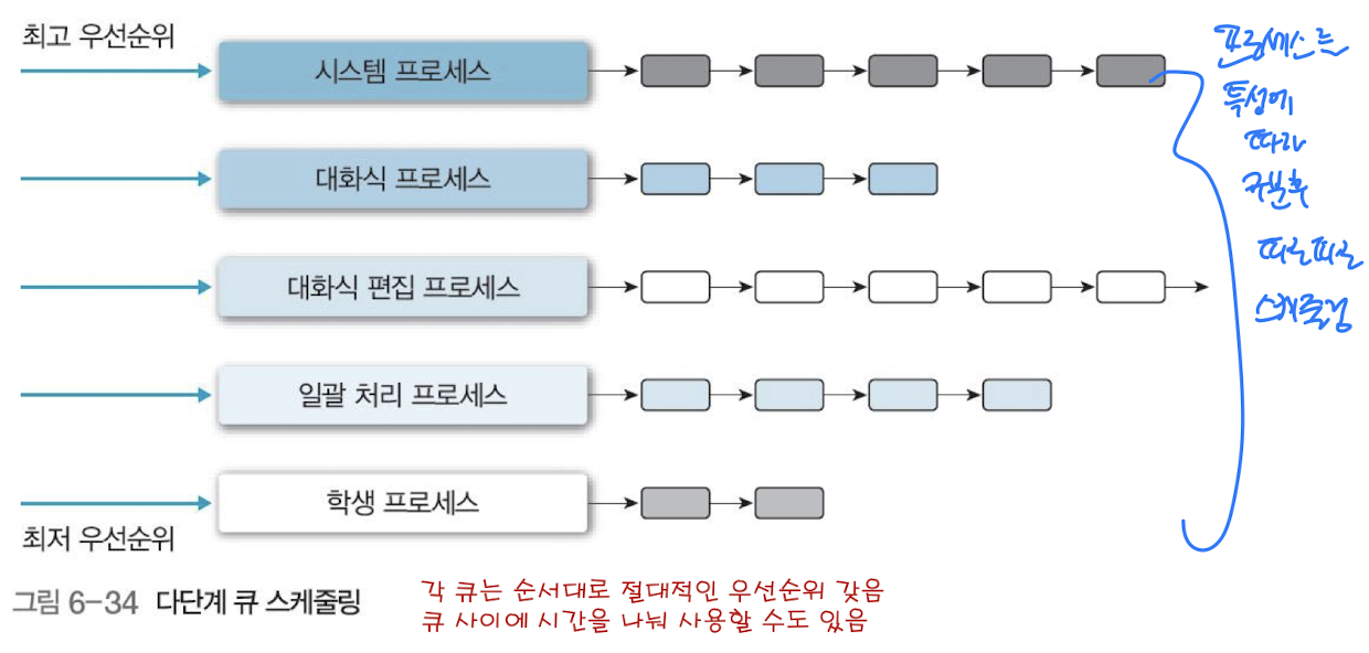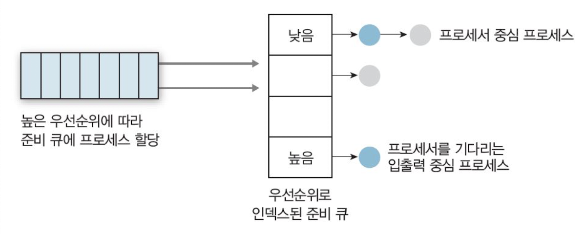 - 준비 상태 큐를 종류별로 여러 단계로 분할,