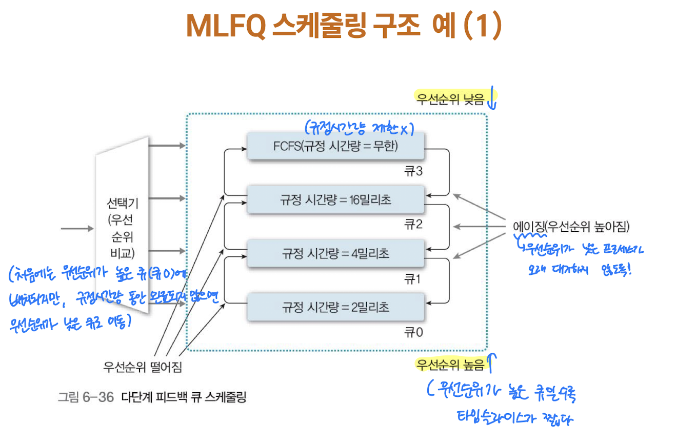 🚨 여러 개의 준비큐 & 여러개의 스케줄링 알고리즘 땜시 추가 오버헤드 발생