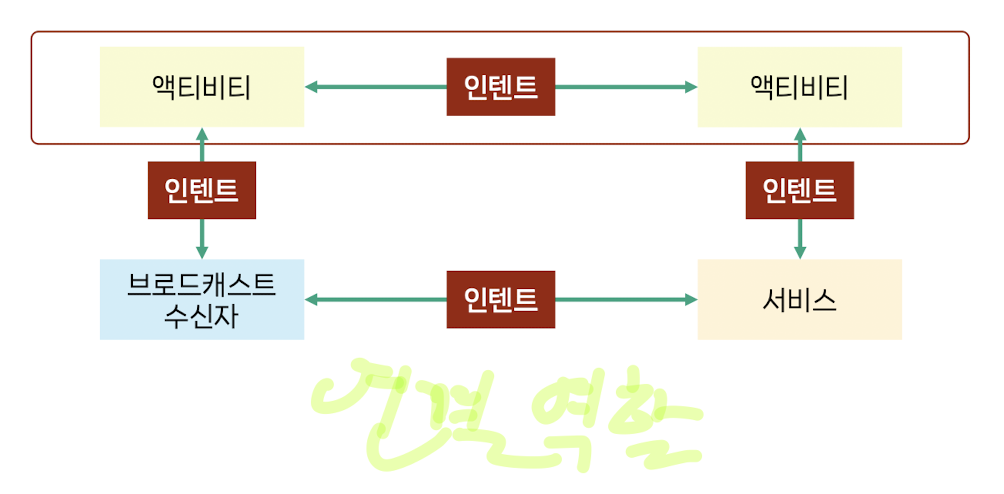 : 액티비티에서 다른 액티비티를 실행하거나 실행한 액티비티에 데이터를 전달하는 등의 다양한 작업을 수행하는 역할을 함