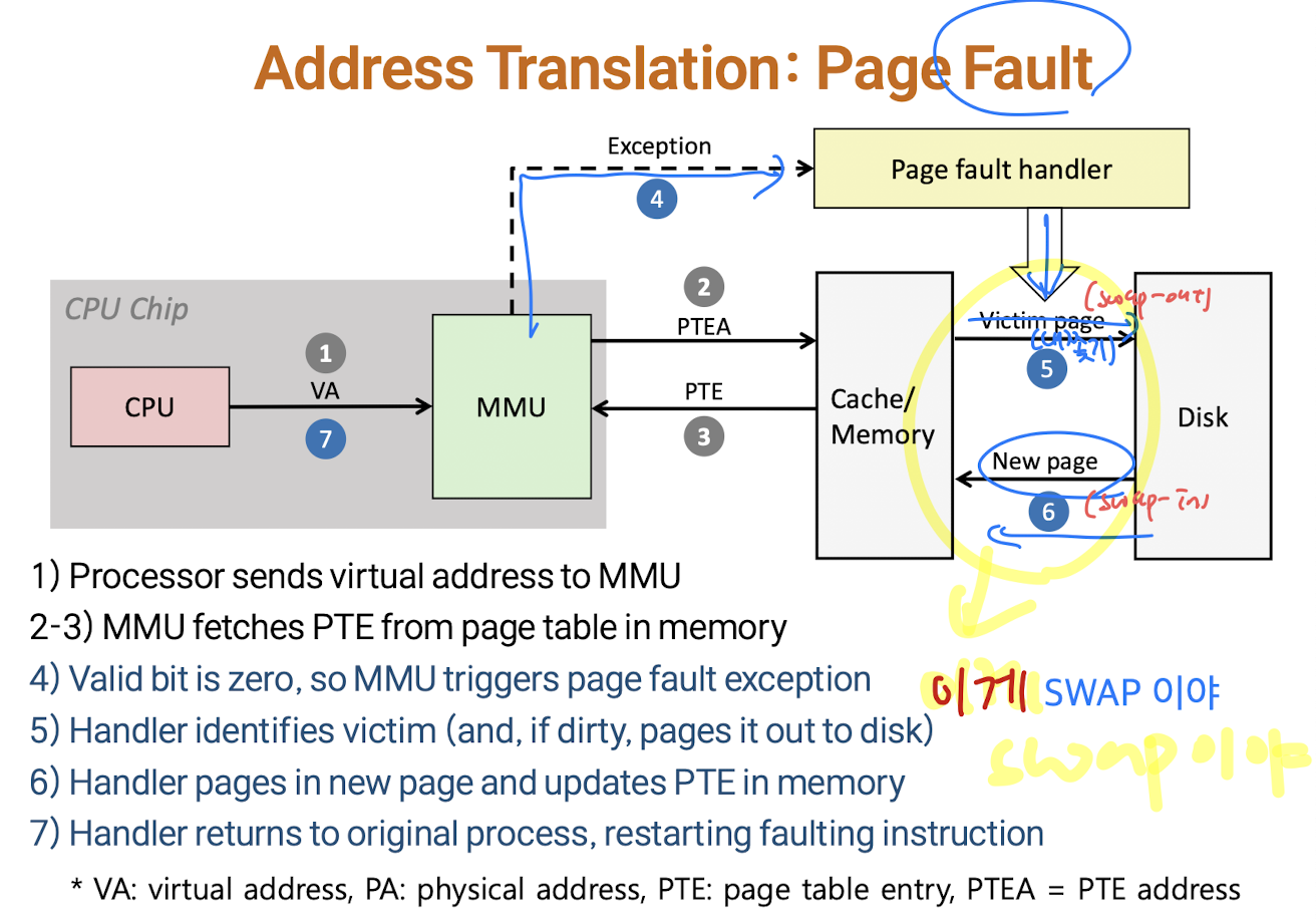 - 실행 중인 프로세스가 자신의 메모리에 접근하려고 할 때, 해당 메모리가 스왑 영역에 있다면 이를 다시 물리 메모리로 가져와야 합니다.