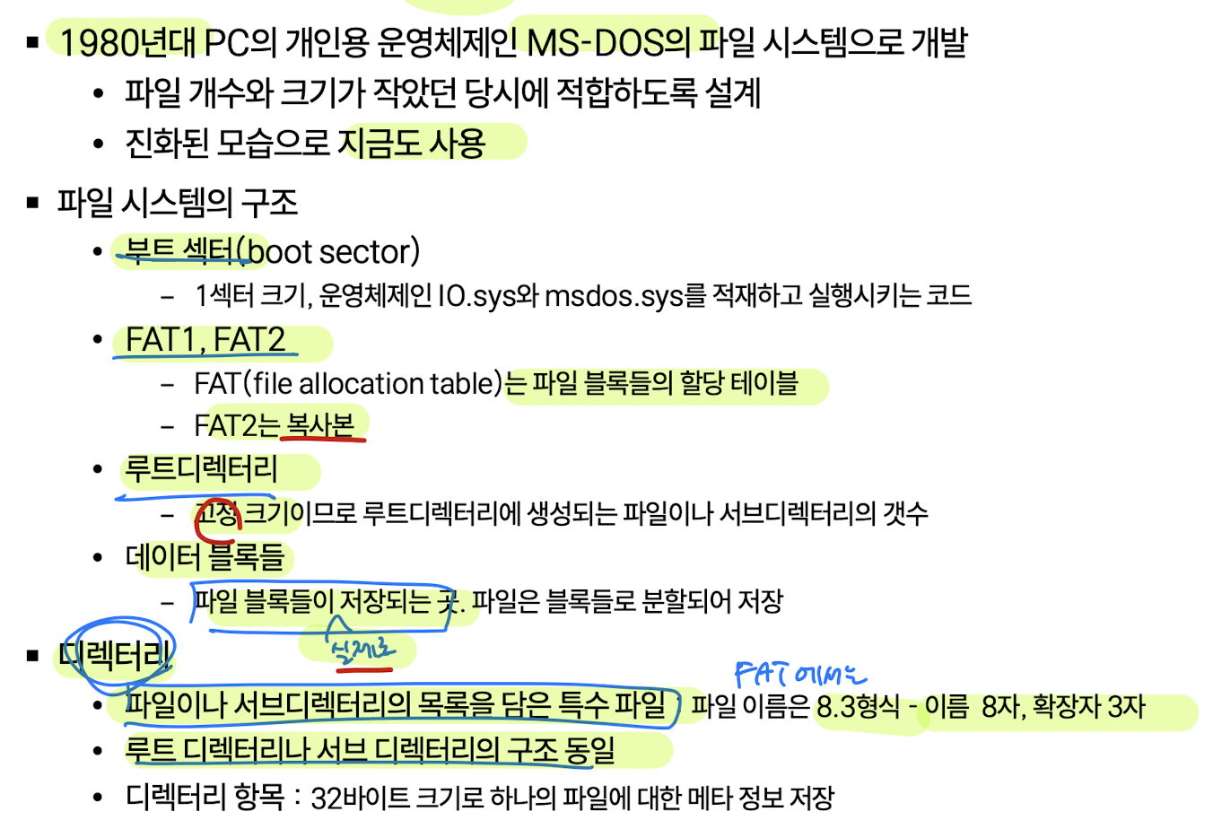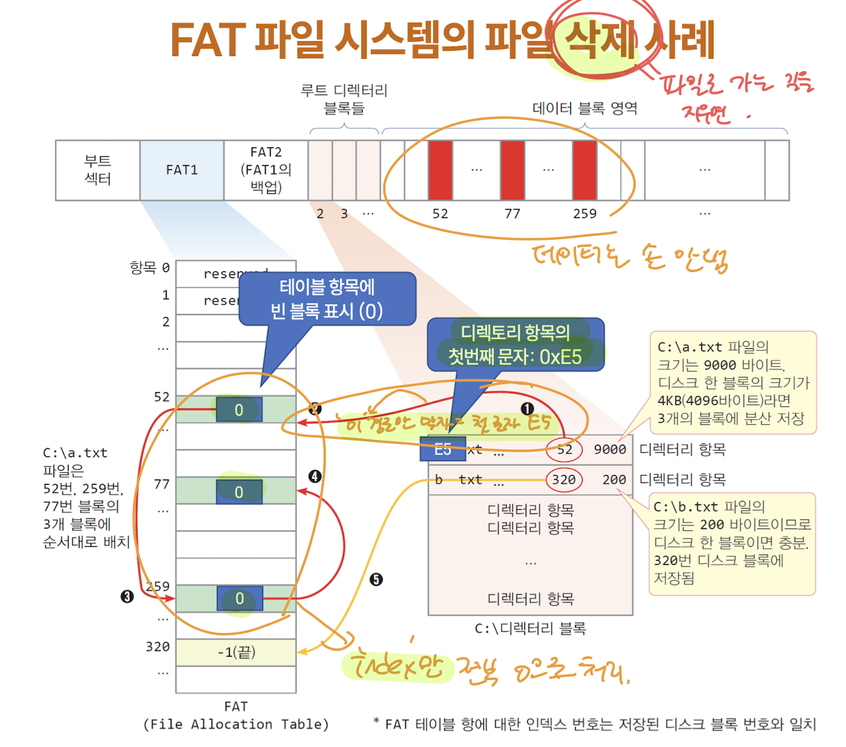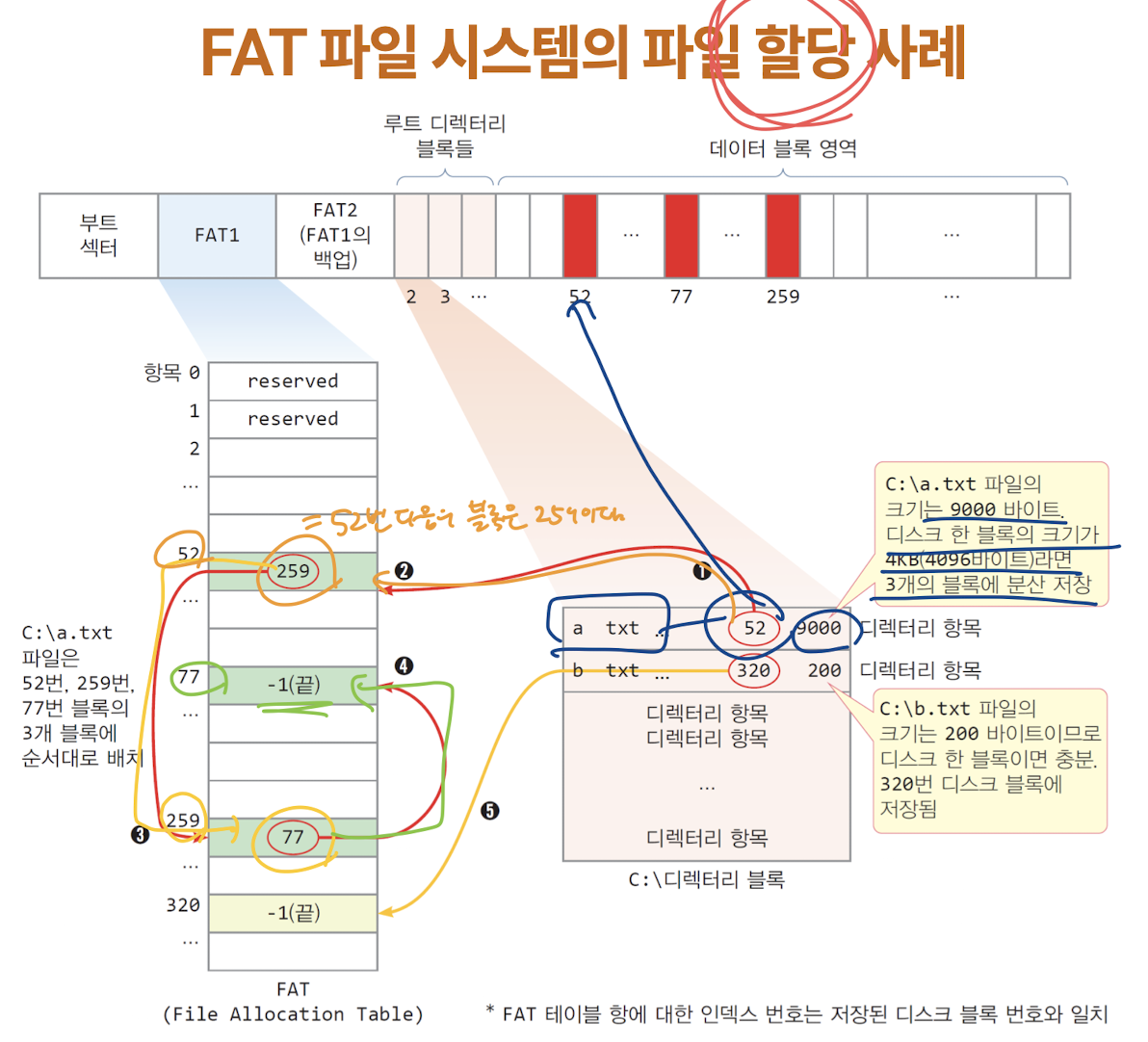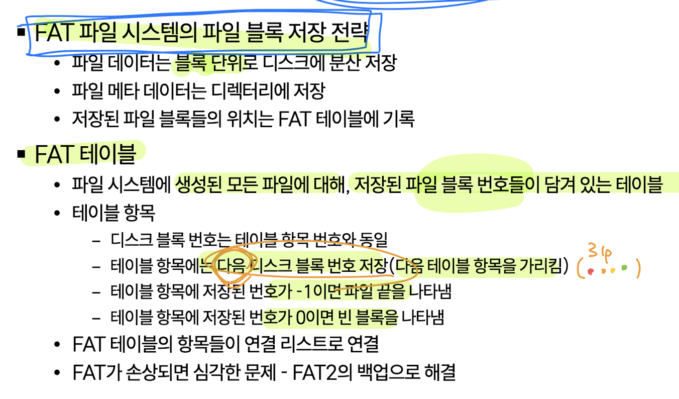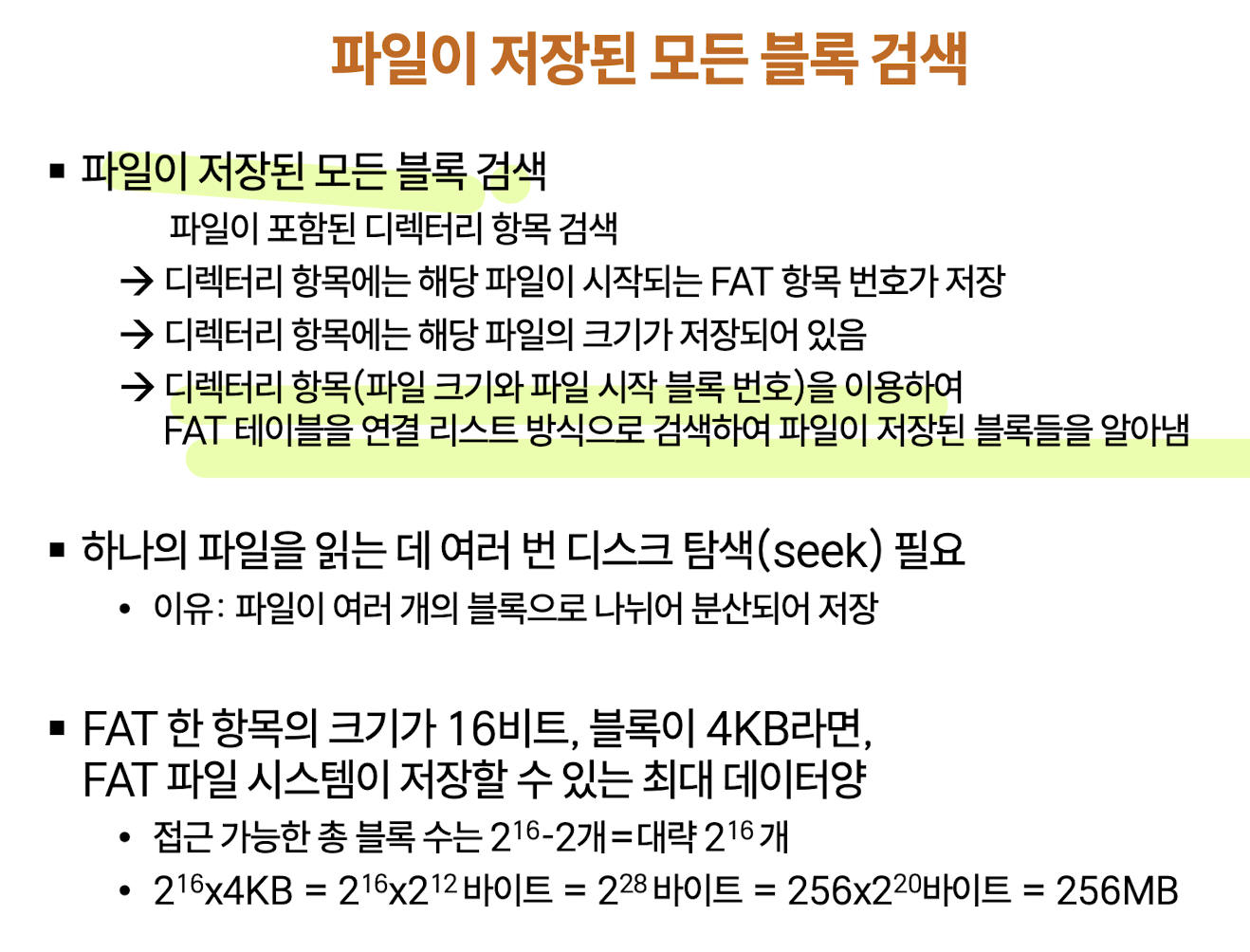 - 실제 파일 데이터가 저장된 위치 정보는 FAT 테이블에 기록