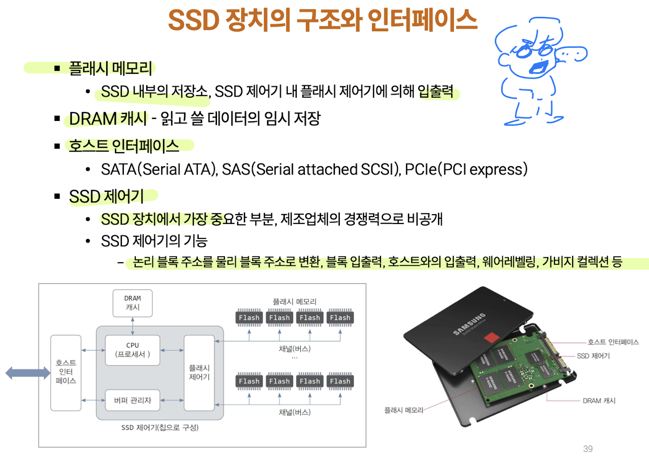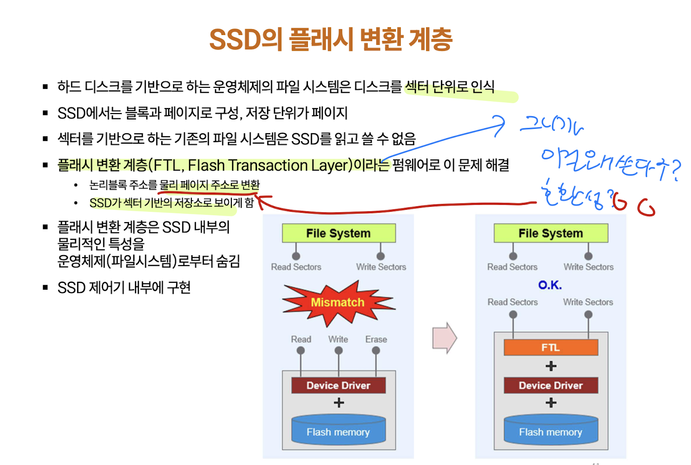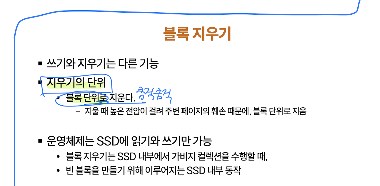 - 운영체제는 읽기와 쓰기 작업만 요청하지만, 내부적으로 SSD 제어기가 페이지 단위로 데이터를 처리합니다.