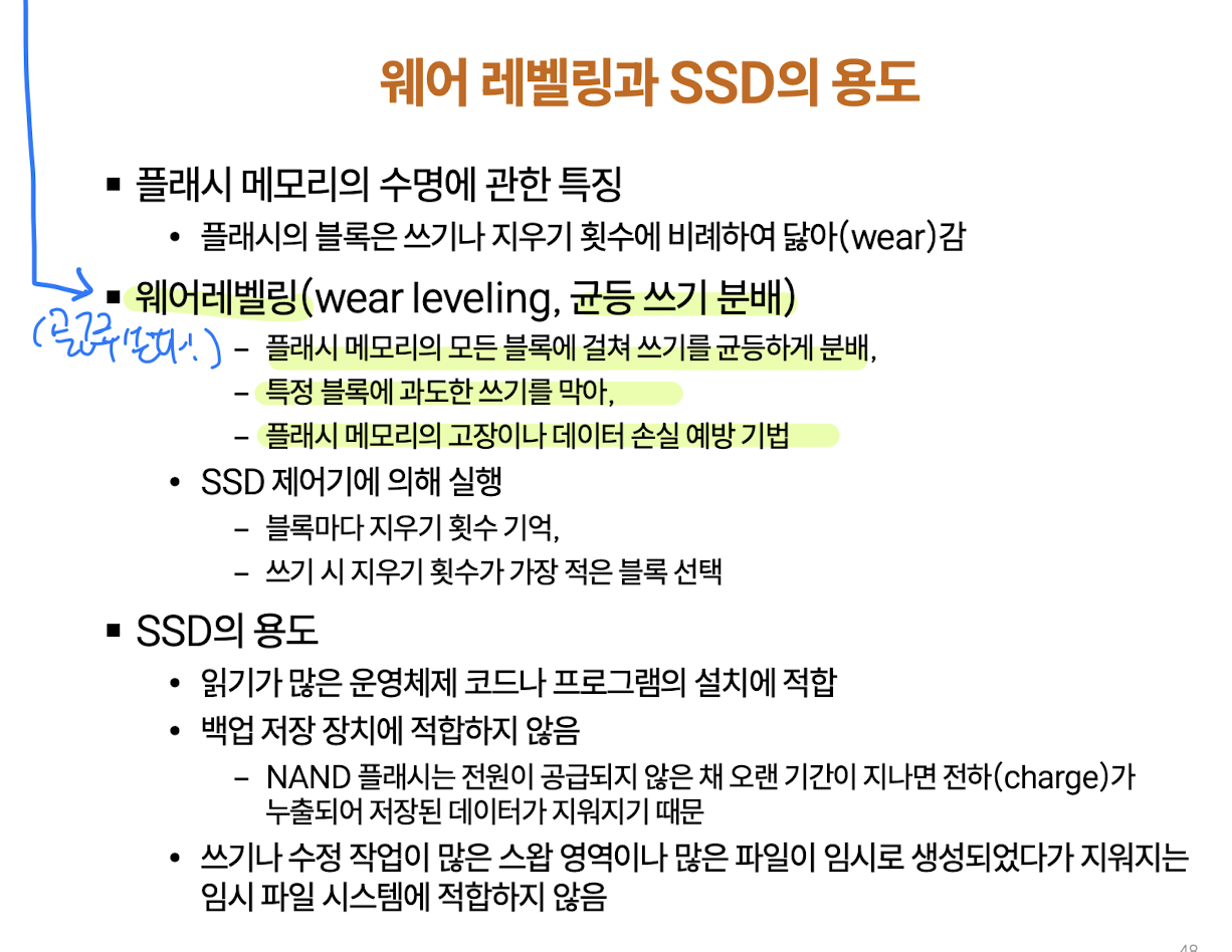 플래시 메모리의 블록은 쓰기나 지우기가 반복될 때 수명 단축, 여러 페이지로 쓰기를 분산시킬 필요 있기 때문