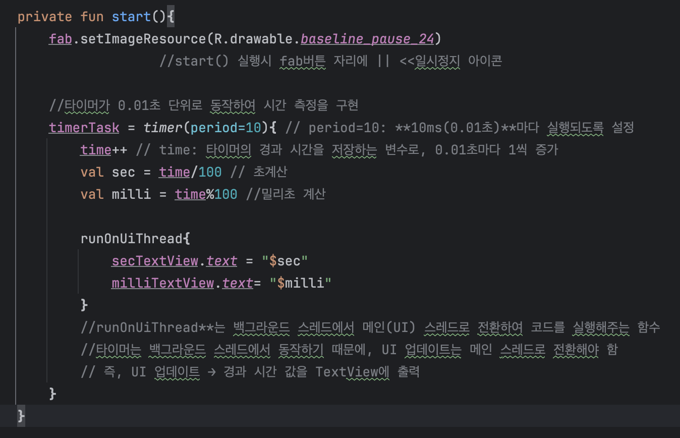 이름이 isRunning이라 아닌 경우도 잇는거 아냐??? 왜??? 했는데 이름에 상관이 있는게 아니라 걍 현재 상태를 반대상태로 바꿔준다는 의미엿음