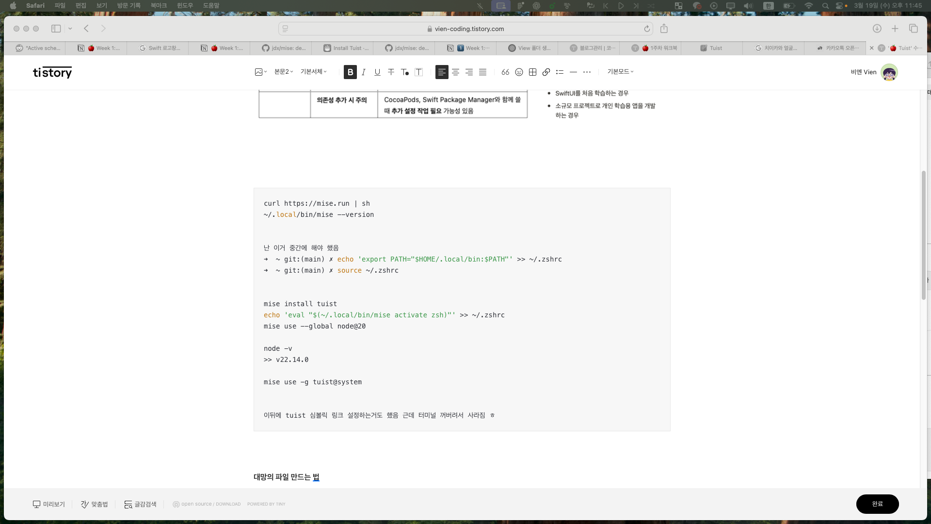 이뒤에 tuist 심볼릭 링크 설정하는거도 했음 근데 터미널 꺼버려서 사라짐 ㅎ