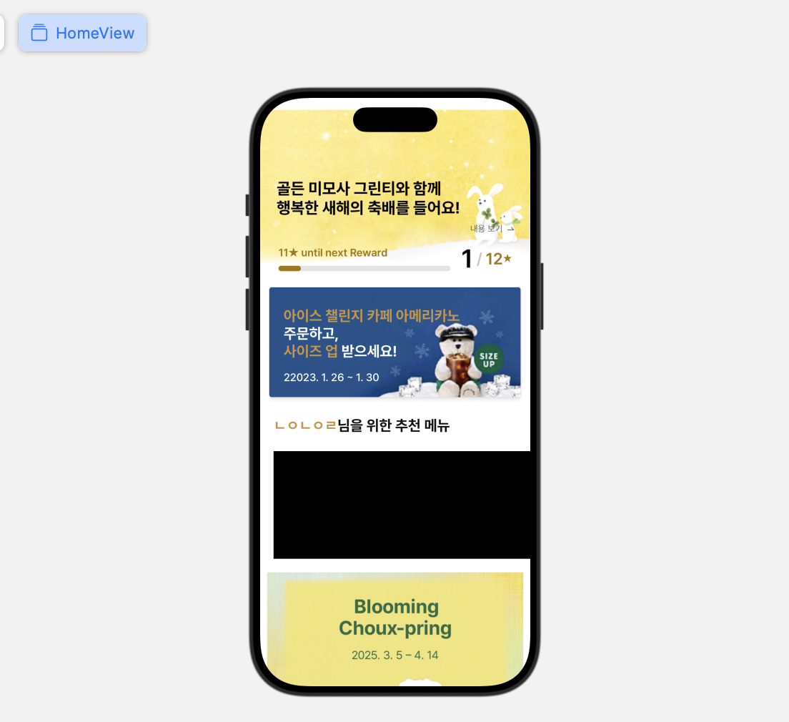 LazyHStack으로 커피 & 빵 & 뉴스 스크롤 뷰 구현