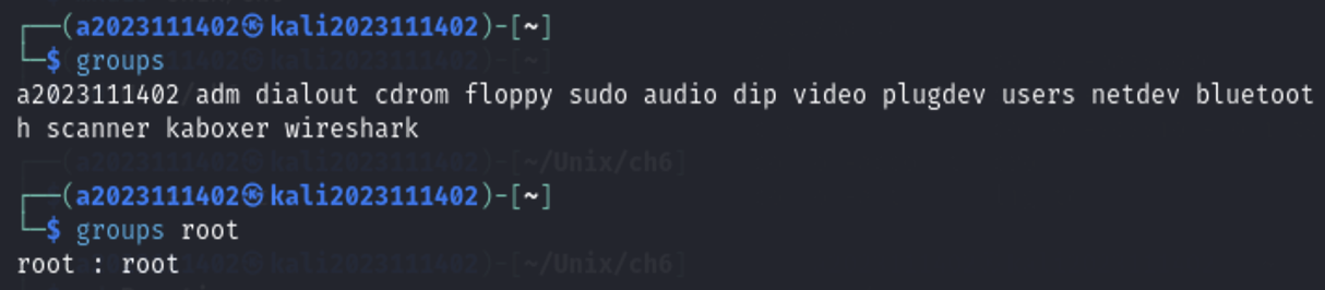 - 인자로 지정한 사용자가 속한 그룹 이름 출력