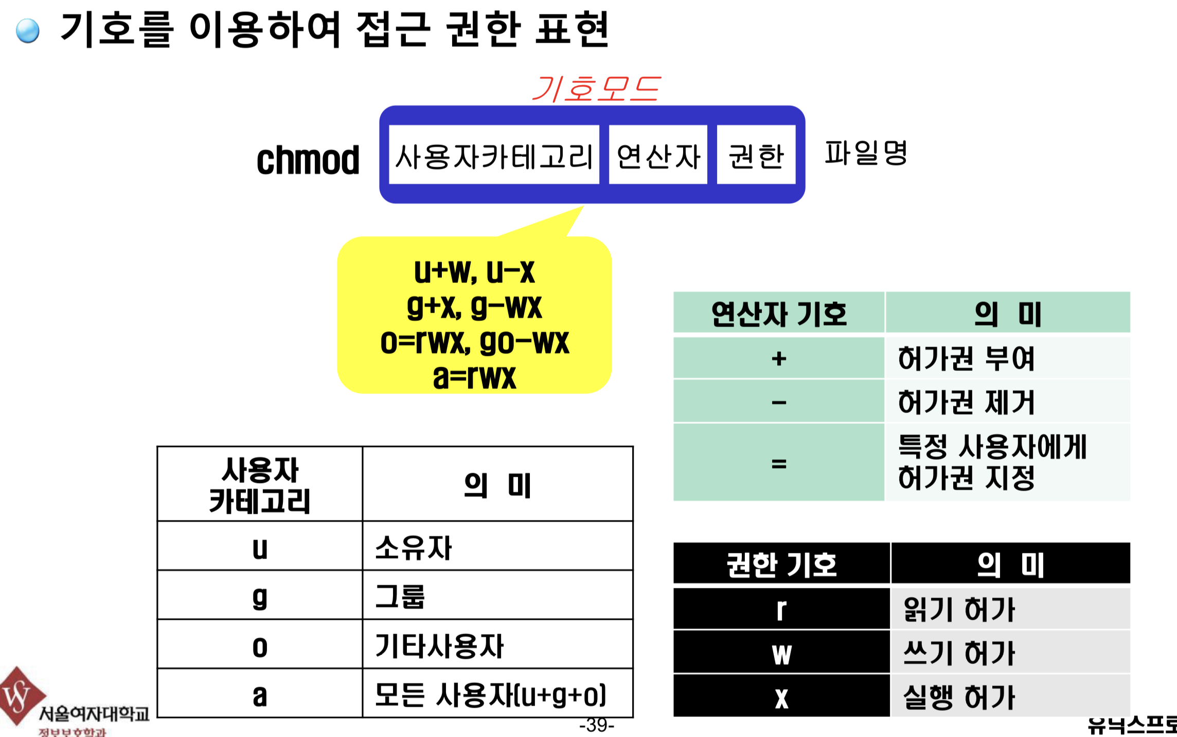 chmod : 기호를 이용한 파일 접근 권한 변경