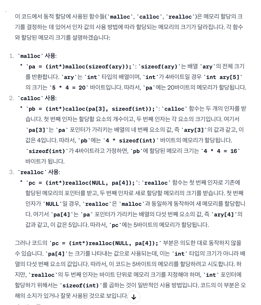 realloc : 크기 조절(재할당) -realloc함수는 첫번째 인자로 기존에 할당된 메모리의 포인터를 받고, 두번째 인자로 새로 할당할 메모리의 크기를 받음