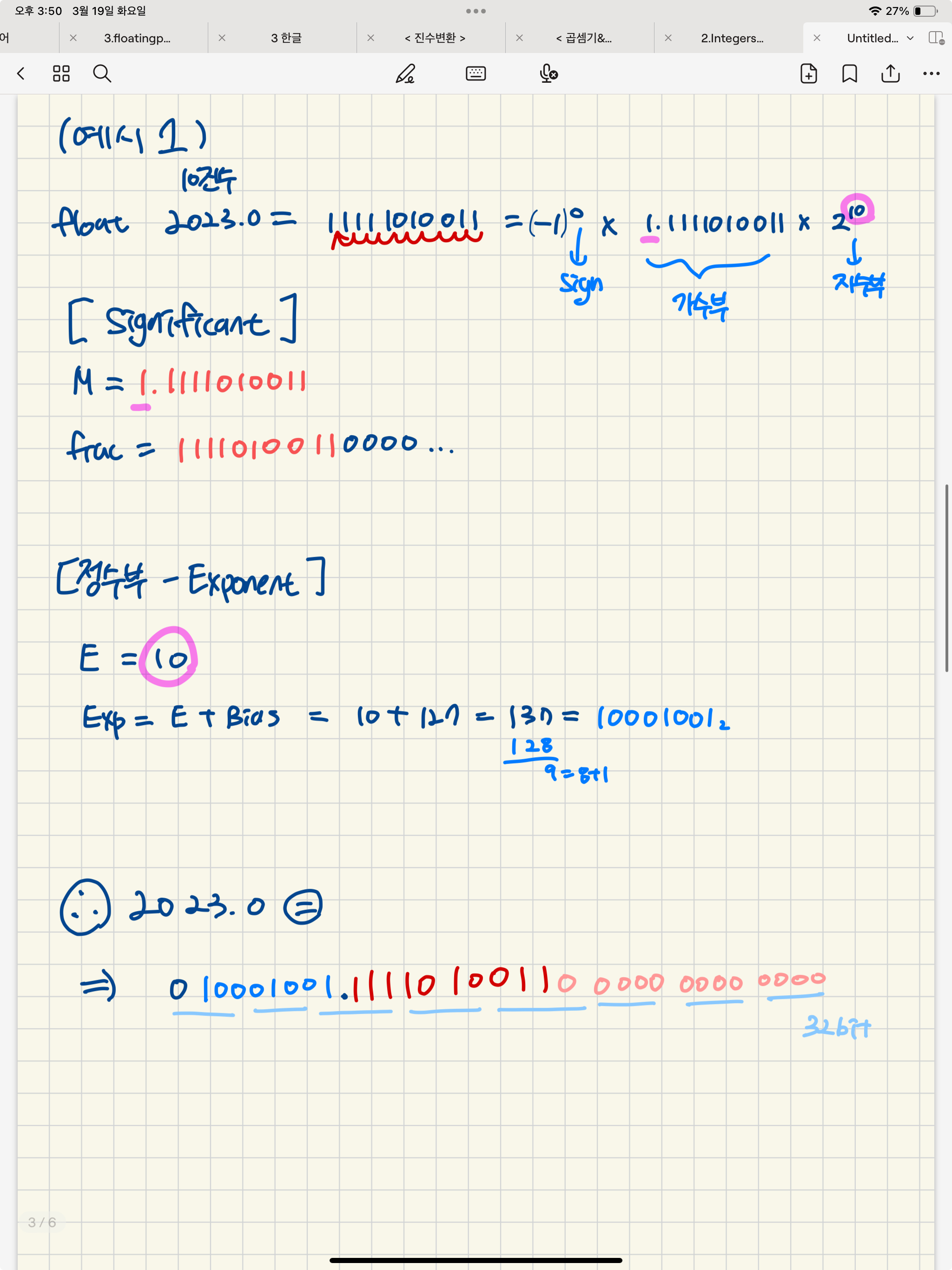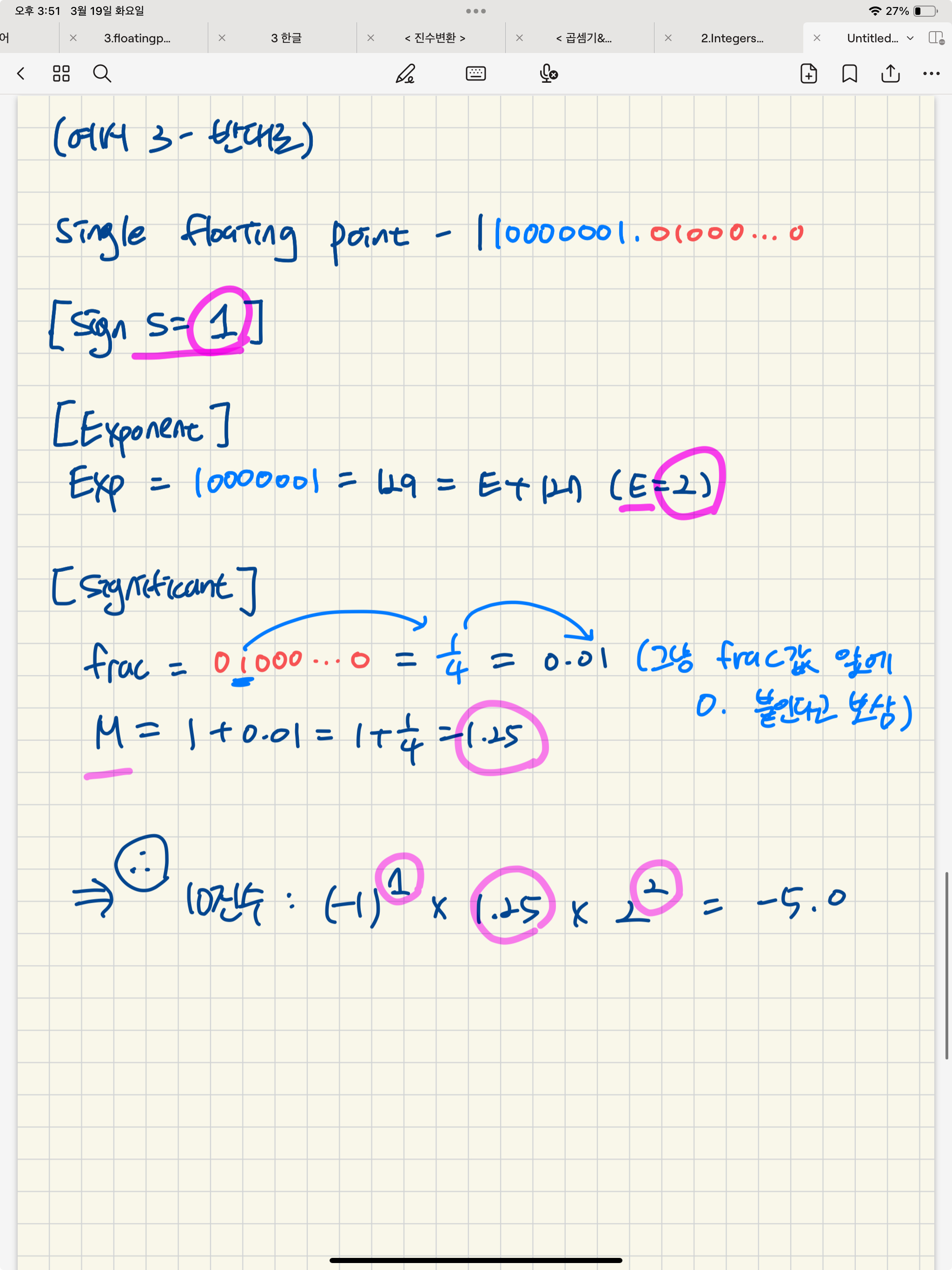2. exp = 111...1, frac != 000...0 : 숫자가 아님 (NaN) (값이 정의 될수 없다)