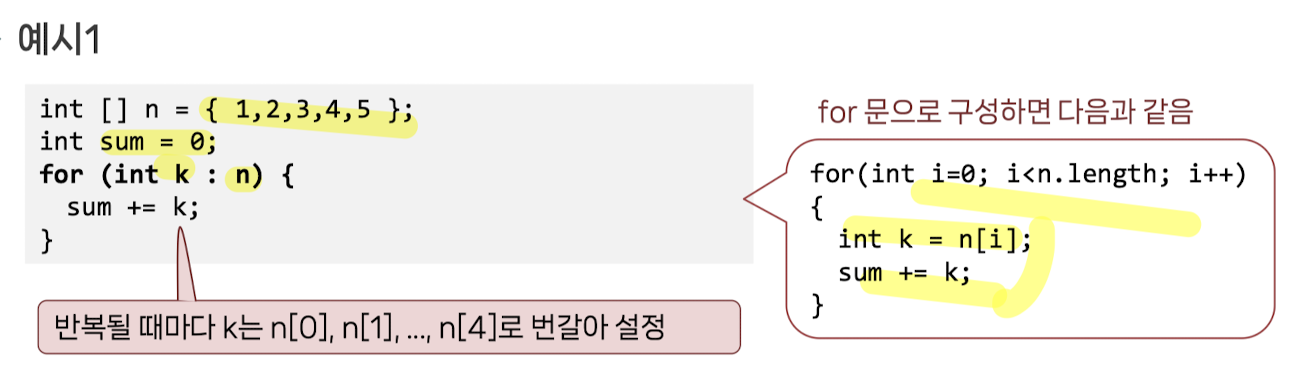 - 이거 그냥 k:n 에서 n이 배열(n[i]), k가 그걸 저장하는 변수인거임 아래 예시 1보면 바로 이해완 ㅇㅋ?