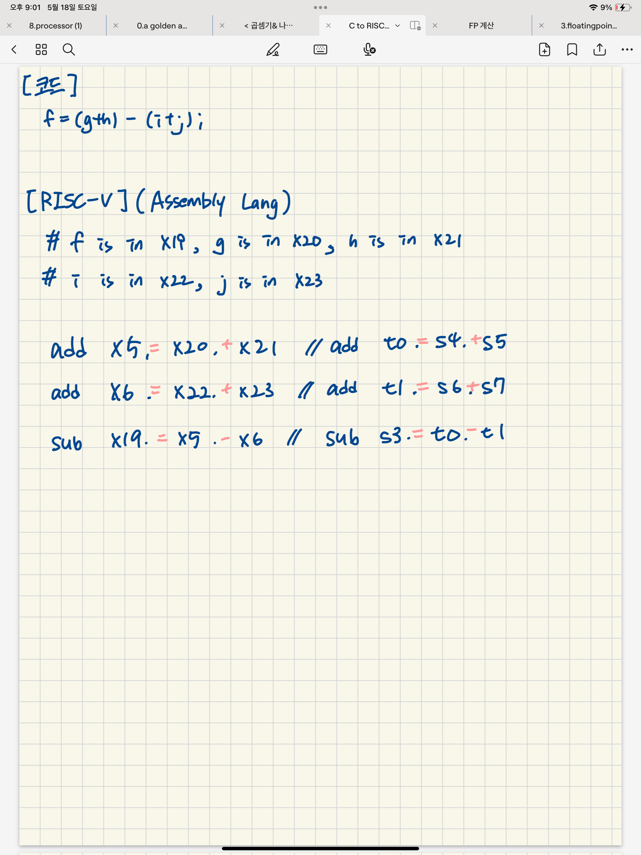 🖥️ 컴퓨터구조 - C code to RISC-V assembly