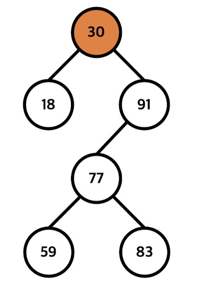 > 35를 루트노드로 가지는 서브 트리 중에서 최대원소인 30으로 교체