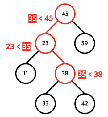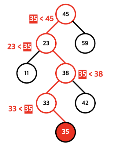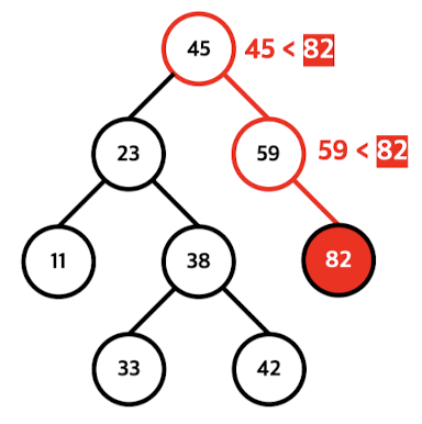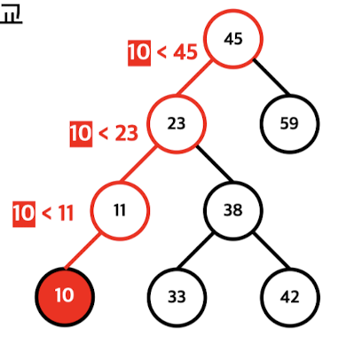 - 삽입하고자 하는 값과 현재노드의 값을 반복해서 비교하며, 점점 내려감