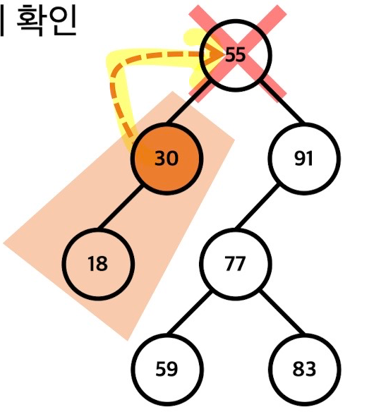 - 이진 탐색 트리의 루트 노드로부터 출발